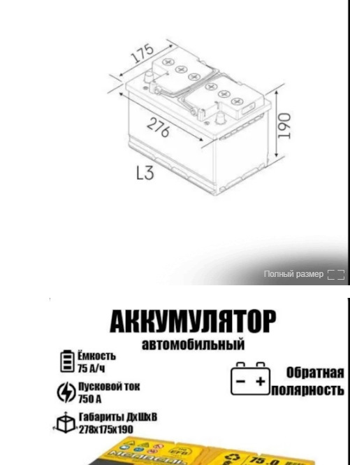 Начал выбирать новый, хотел купить на 75 А/ч, но прочитал, что надо менять крепление, решил не заморачиваться и взять стандартного размера на 65 А/ч (276*175*190).