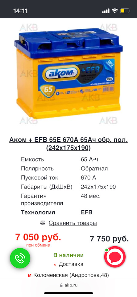 Заказал доставку к дому, в 19:00 приезжает курьер, достает мне 65 аккумулятор, я открываю капот, а у меня стоит на 75 и крепление уже поменяла прошлая хозяйка. Перезаказываю на 75, через час привозят нужный, меняю, конец истории)