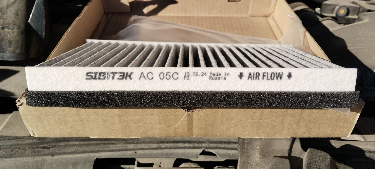 Первым делом я начал замену воздушного фильтра. Был приобретен угольный фильтр фирмы SibТЭК.