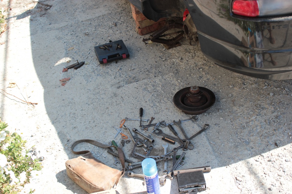 На следующий день сразу принялся за перед и тут понял, что вчера были цветочки. Про пыжился часа два со снятием супорта и когда сделал это просто взял и поставил его на место ибо снимать привод, шаровую и делать это все одному без спец инструмента мне не предстовлялось возможным…