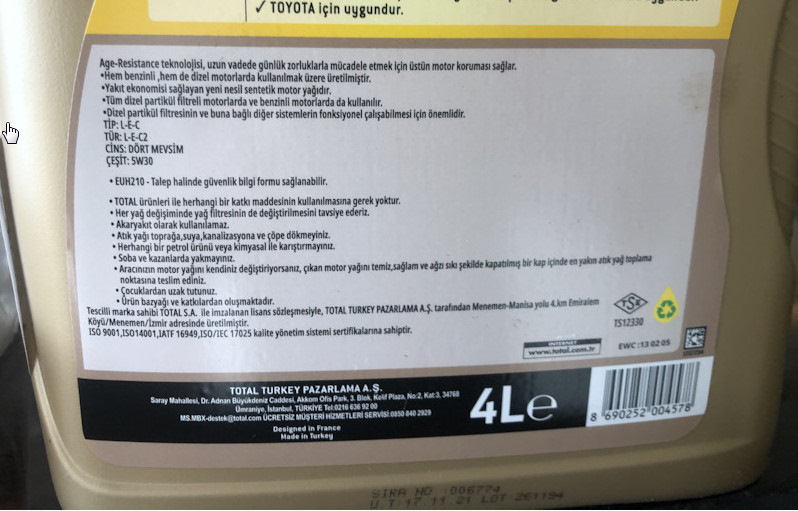 Elf Sporti 9 5W30 C2. По-крайней мере за несколько закупок в разные годы в разных местах все этикетки на банках были наклеены на ОДНОМ станке.