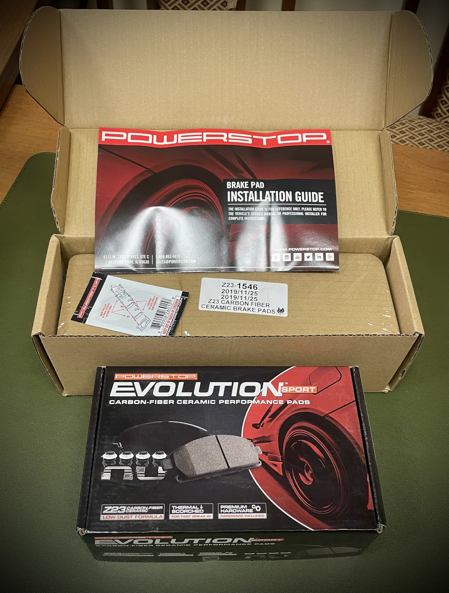 В один прекрасный день я получил предложение от представительства американской компании POWERSTOP (с производством, конечно же в Китае)) протестировать их комплект тормозных колодок "улично-спортивной" серии Z23 Evolution Sport. Согласившись на условия (написать непредвзятый отзыв) я получил посылку от курьера компании уже через пару дней. Комплектация колодок приятно удивила. Задние колодки были упакованы в цветную плотную коробку, передние — в однотонную картонную. В комплекте находились брошюры, монтажные скобы, смазка, прокладочки (немного не того размера правда). В общем на первый взгляд — очень достойно. Керамический состав рабочей поверхности, укрепленный углеродными (карбоновыми) волокнами, согласно рекламным заявлениям компании, обещает быть стойким к износу, с повышенным коэффициентом трения (класс GG 0,46-0,55). Колодки ориентированы на мощные автомобили с большой массой, в том числе представительского класса. Между основанием колодки и фрикционным составом имеется звукоизоляционная противошумная пластина, на рабочих поверхностях сделаны специальные канавки и скосы, также для предотвращения шума.