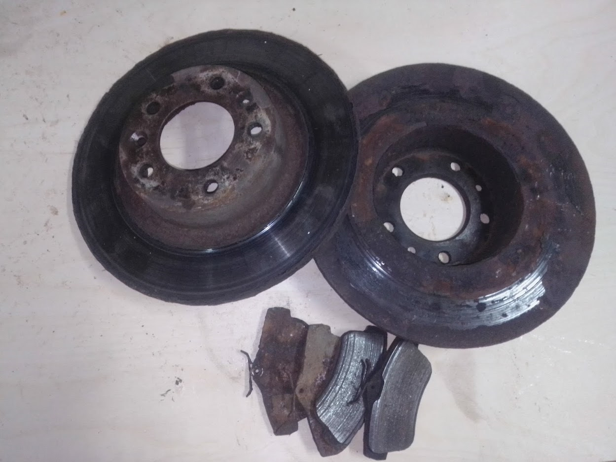 При переобувании мельком отметил, что задним колодкам колодкам и дискам конец.
