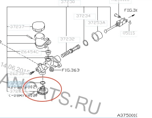 Потеет из под детали номер 37261-FC000, так называемая на экзисте заглушка.