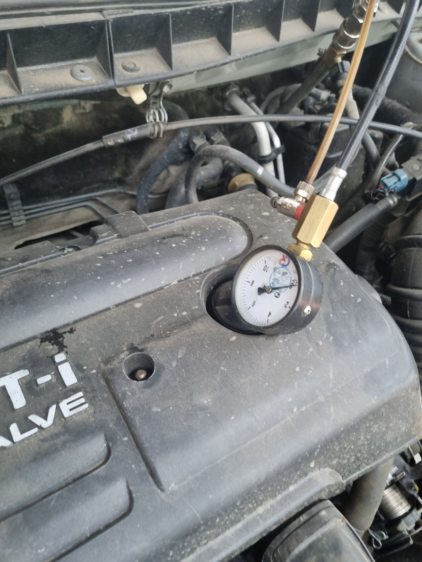 Ещё на кануне вечером заметил что как то долго стала запускаться премка, если заглушить и оставить на 10 минут то будет крутить около 10 секунд, сегодня утром и вовсе пришлось идти с ключа запускать . сразу стало понятно что вышел из строя регулятор топлива. Что бы убедиться что именно он неисправен подкинули на работе манометр, и увидели что давление сразу пропадает при заглушеном моторе, в замене ни чего сложного, достать модуль расчехлить и достать сам регулятор . Фильтр менять не стал дабы менял его не так давно . После сборки проверили по манометру давление спустя пол часа опустилось до 1,6 .