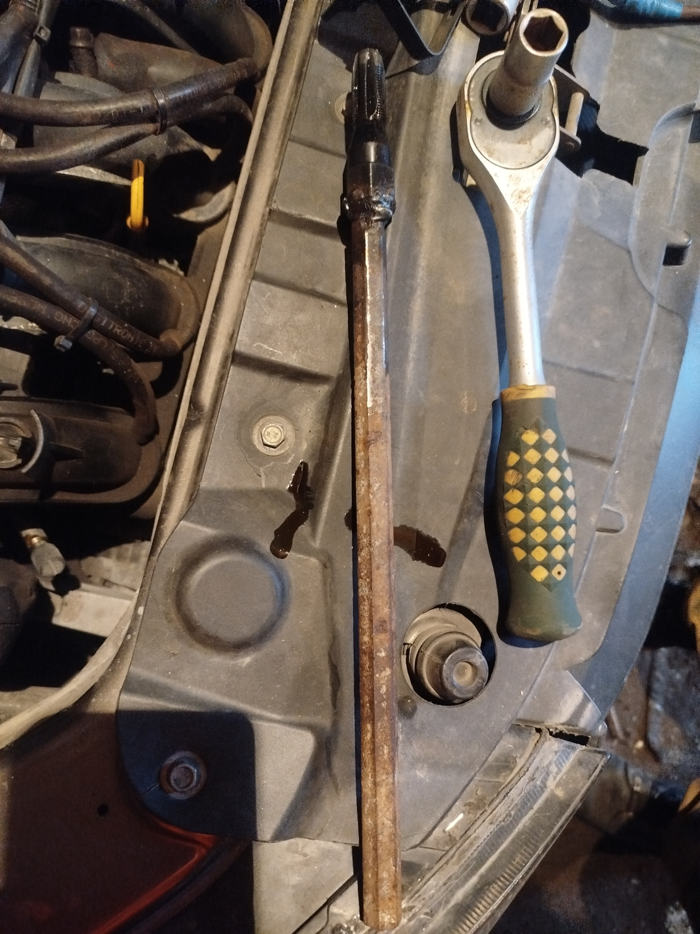 Всё нарезалось и сверлилось вручную с помощью трещетки, а головка спокойно одевалась на шестигранную арматуру.