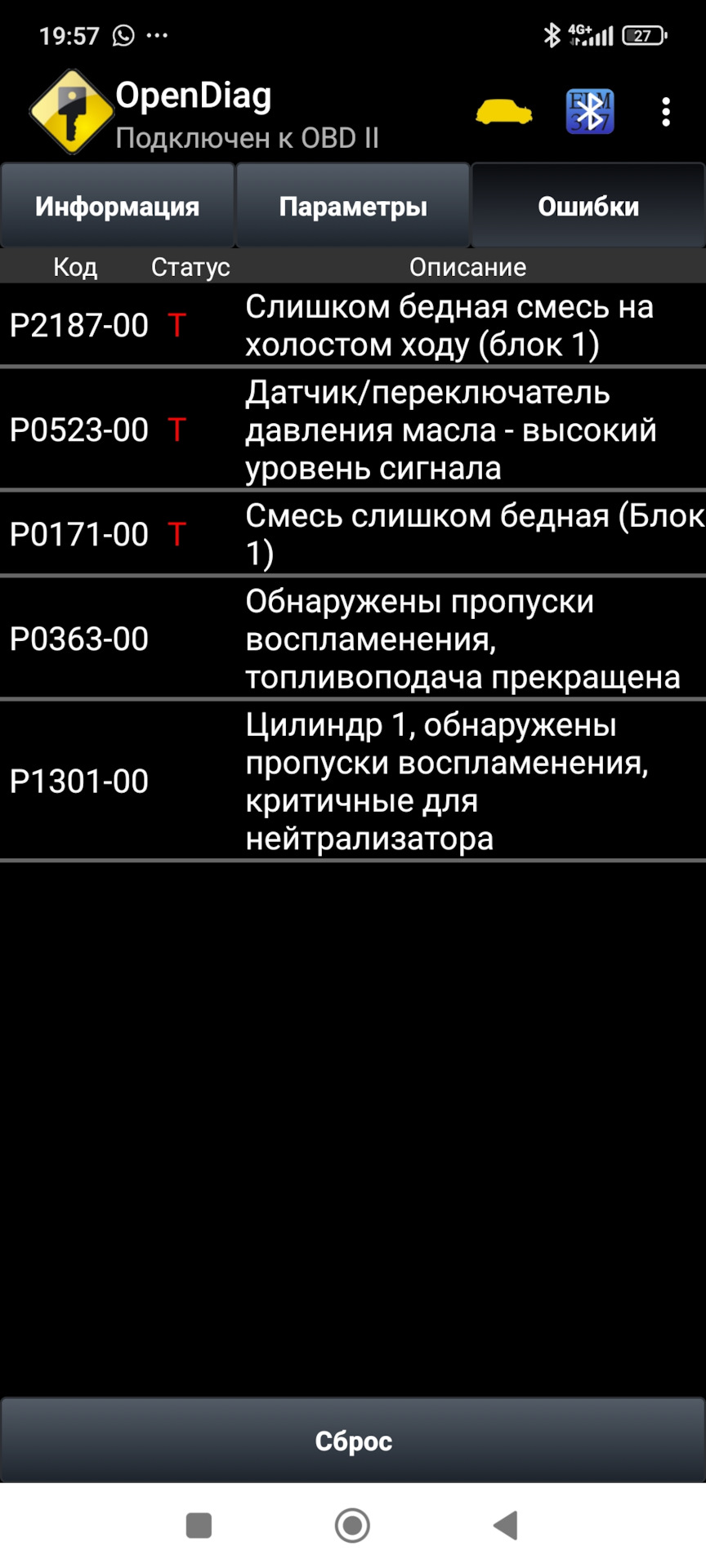 При этом лямбда-зонд наконец почувствовал пропуски вспышек и уже не мог его компенсировать корректировкой продолжительности впрыска.