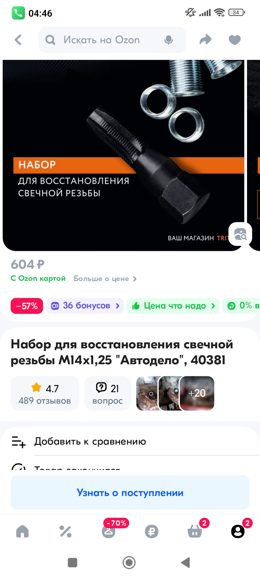 Набор для восстановления свечной резьбы был куплен ещё в январе или декабре