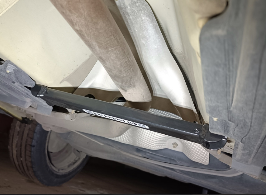 Последнее фото под днищем маленькая распорка, визуально кажется зазор очень маленький до вых. трубы, не бьет по распорке вых. труба?