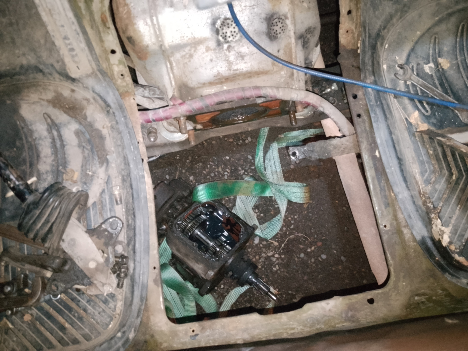 Коробку снимал стропом — пропустил строп спереди и сзади, вытащил коробку из картера сцепления и за строп опустил на землю. Без барабана ручного тормоза и крышки, весит она килограмм 15-20, поэтому это не трудно сделать без лебёдки и других приспособлений.