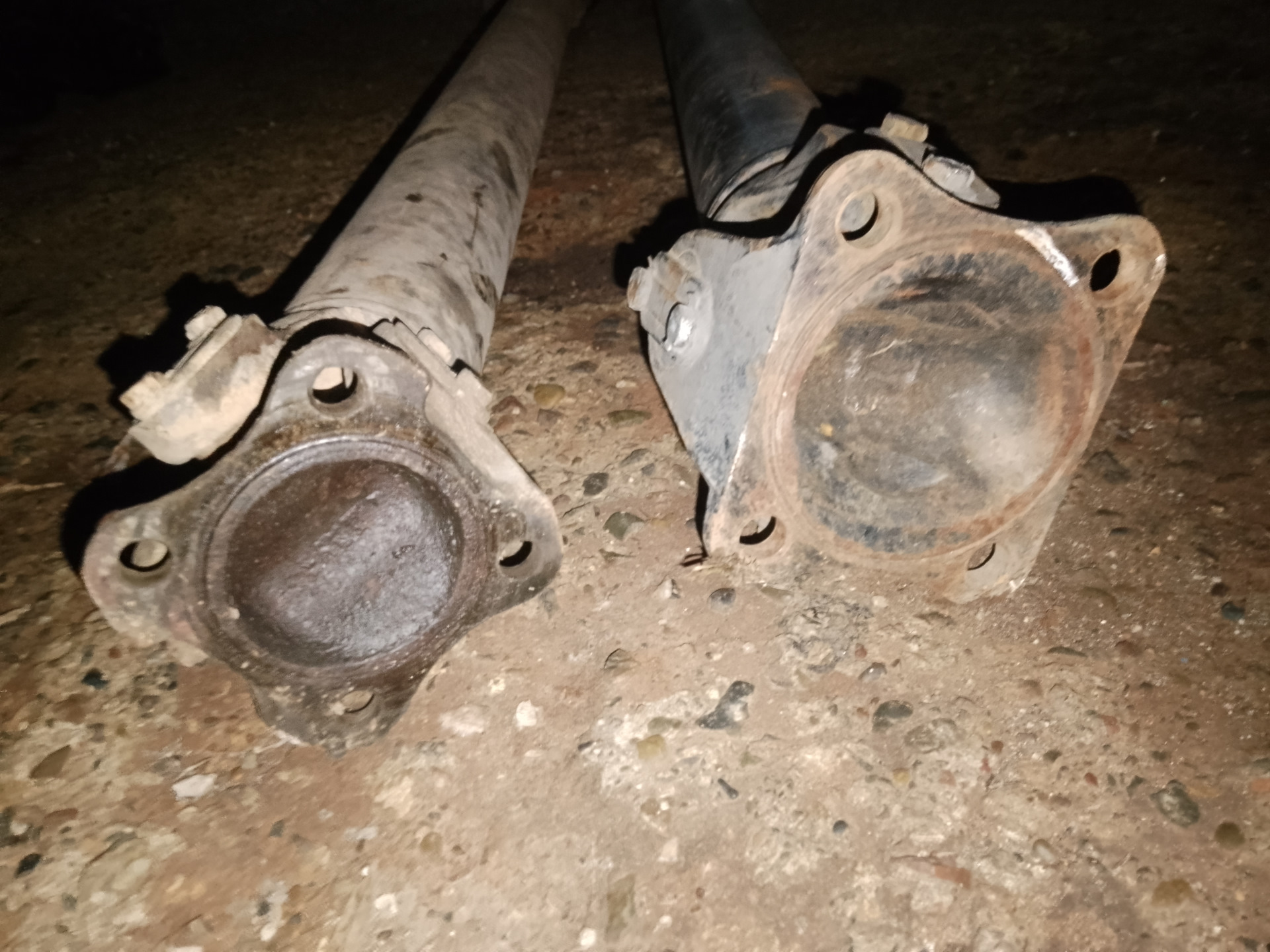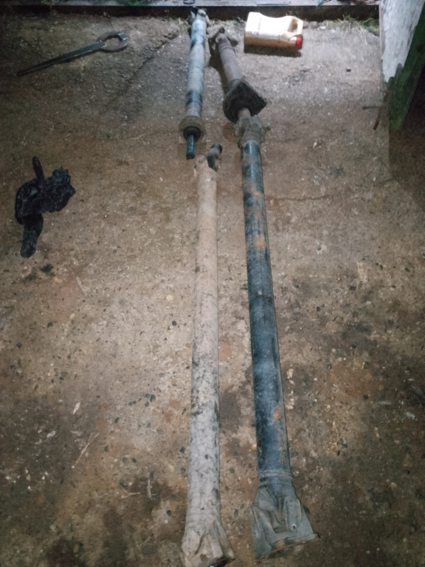 Ещё кардан нуждается в замене. Скользящее соединение болталось ещё при покупке машины, из-за этого периодически возникала вибрация. С коробкой сразу купил кардан (3500Р), написано в объявлении было ГАЗ 53. Сравнивал фотографии с другими карданами 53 перед покупкой — вроде и правда он. После покупки оказалось, что кардан этот, судя по всему, от ЗИЛа. Основное отличие в длине передней части — У ЗИЛа она короткая, у ГАЗ она практически равна задней. И резиновая подушка подвесного подшипника у ЗИЛа сильно больше, у ГАЗа она совсем немного больше диаметра кардана. На это я не обратил внимания. По конструкции всё одно и то же, ЗИЛовский только чуть больше размером, но не сравнивая два кардана друг с другом, это не заметить. В общем, оставил пока старый кардан, буду искать другой. Это как наставление на будущее тем, кто решит купить кардан, чтобы не перепутали как я.