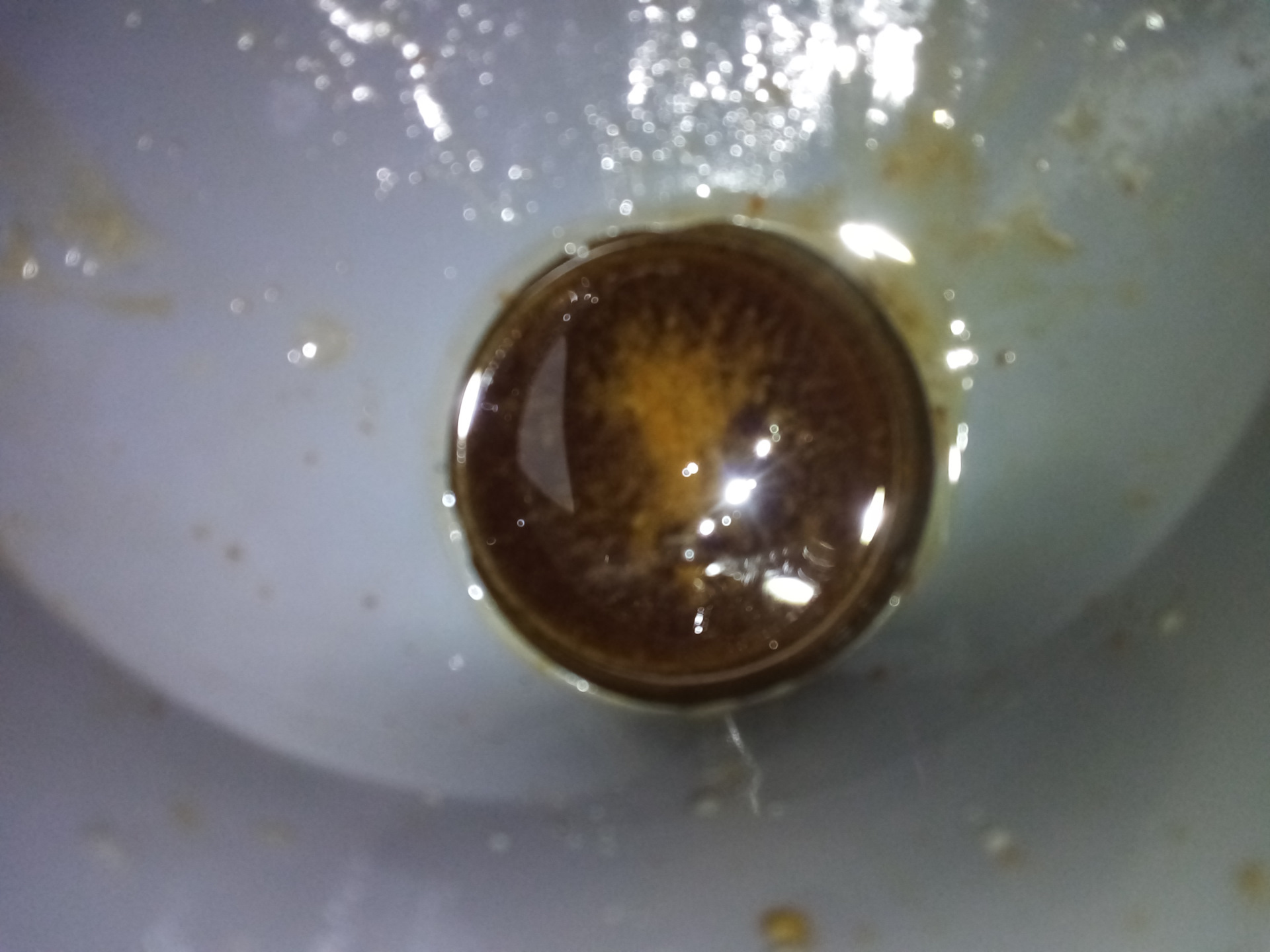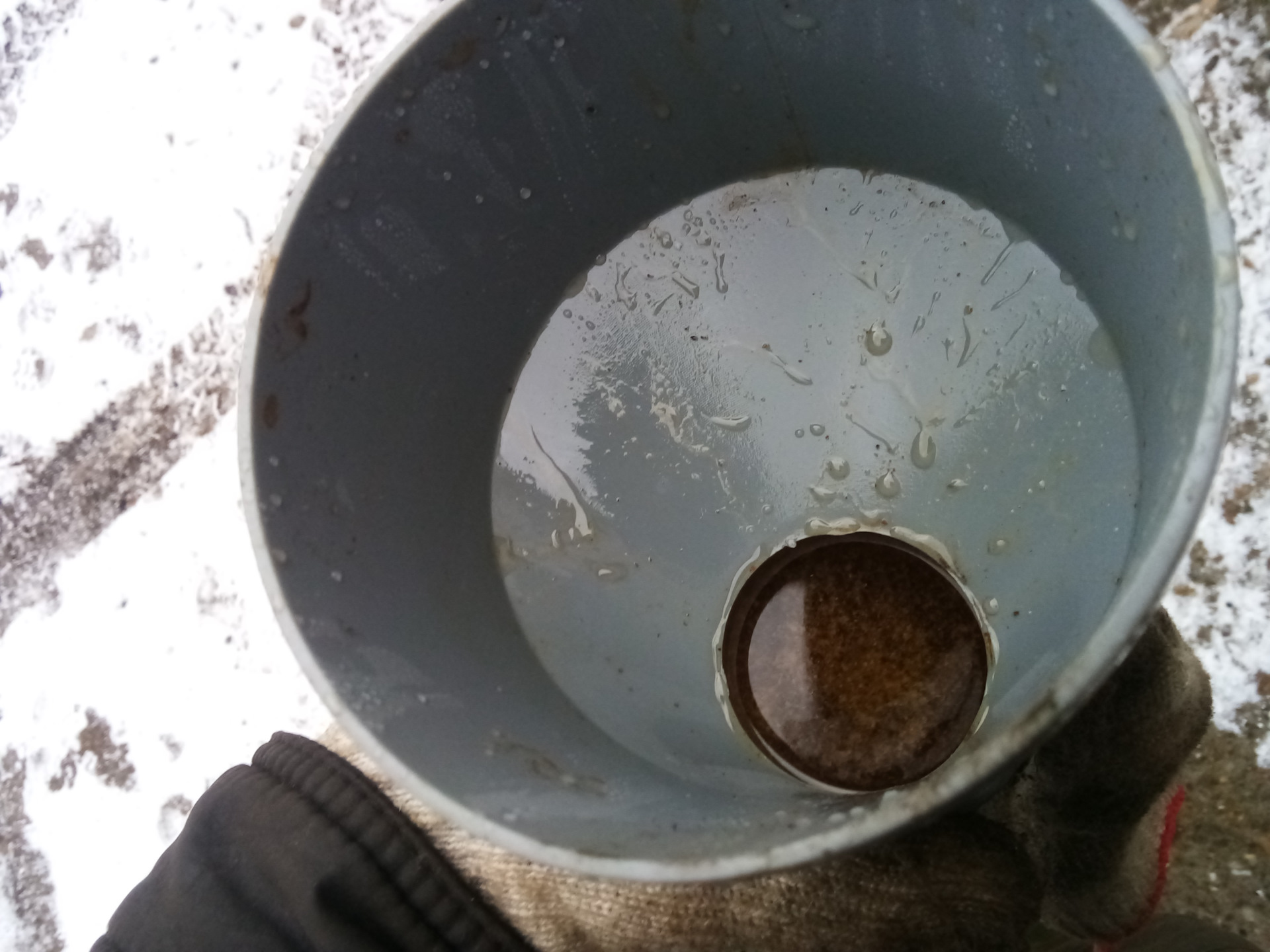 Итак, пробег примерно 600-650 км, время — с конца сентября по начало ноября. Да, немного проехал. Примерно 300км трассы, столько же город. При смене шин в начале ноября решил глянуть, что там в маслоотделителе. За этот период накопилось порядка подстаканчика пластикового. По уровню — почти полный колпачок-заглушка ПВХ на 50мм. По составу в основном это вода, в которой плавали масляные капли.