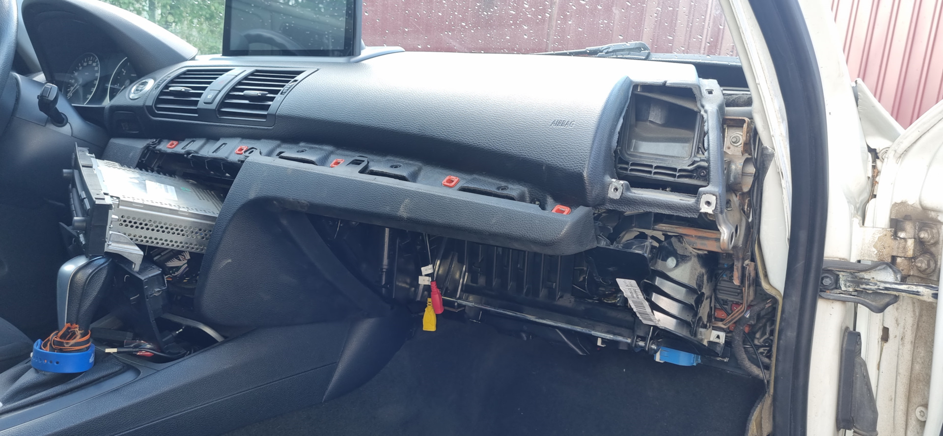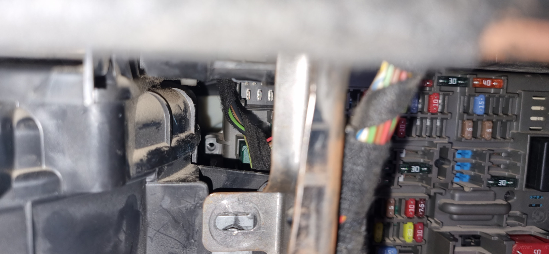 С яростью берсерка начинаю выдирать бардачок и пространство за ним. Было непросто открутить блок предохранителей из-за упрямого болта между мотором отопителя и металлическим кронштейном. Для этого я снял еще и мотор печки.