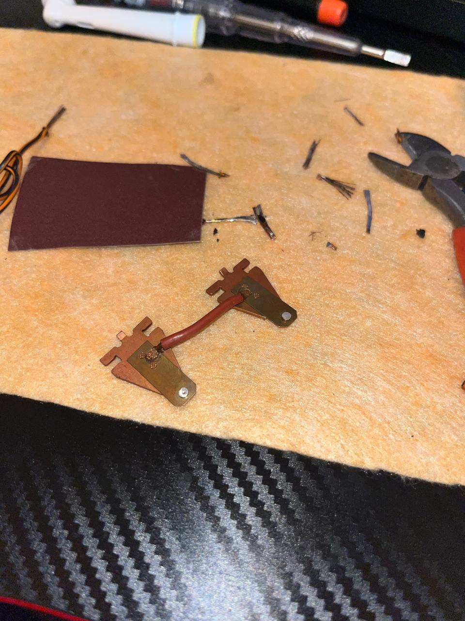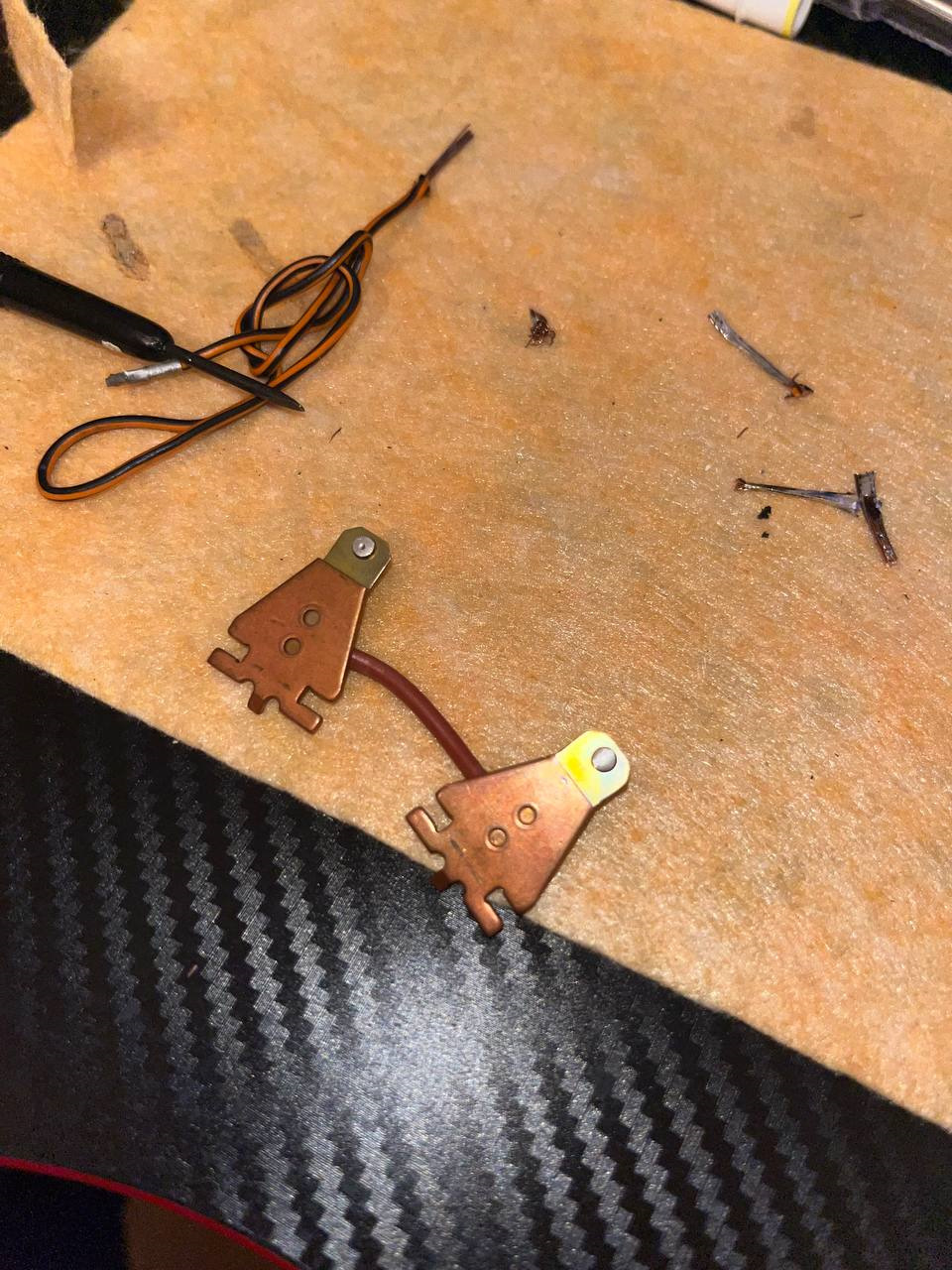 Понимаю, что скорее всего когда-то фары работали очень долго, контакты нагрелись и после выключения фар на одном появилась "сопля", а на другом "ямка". Нуу… ямку закрыть нечем (Припой расплавит), а менять контакт слишком большой гемор, так что закрываем на это глаза, берем наждачку выравниваем и чистим контакты.