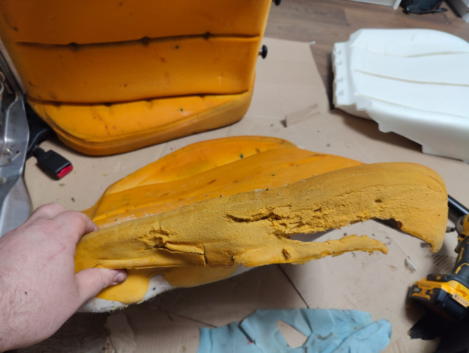 В общем подушка сиденья "болт-он" не встаёт… Но вырезая куски под форму своего сидалища словно скульптур таки подогнал. Лучше всего с этим как ни странно справилась болгарка.