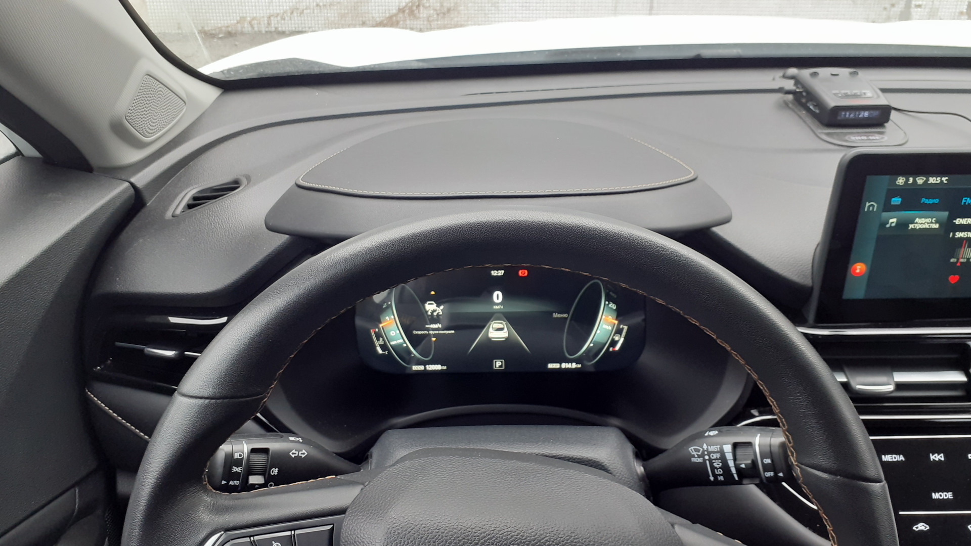 На Кулрее топливная шкала не эталонная в плане наглядности, но там хотя бы возможно использовать запас хода, чтобы не проехать в нужный момент мимо заправки, и при этом видеть значение скорости, выставленное на круиз. На Москвиче же значение скорости, выставляемое на круиз, пролистывается вместе с другими настройками, и нужно выбирать, что видеть на приборной панели (скорость круиза, запас хода, расход, цифровой спидометр или что-то ещё).