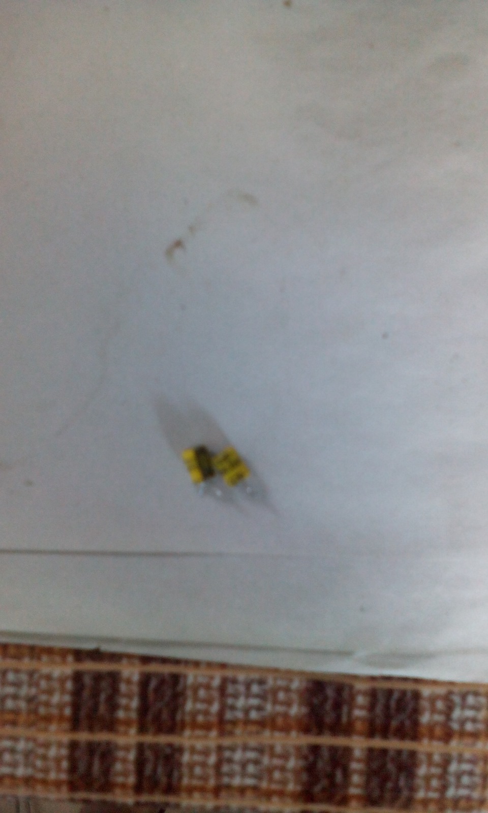 далее нам нужны конденсаторы( я понятия не имею что это такое)))) так как мы работали в полевых условиях и деталей не хватало то получилось что два желтеньких по 0.22 фарад пошли на зад. а два синеньких пошли на перед они по 1 фарад