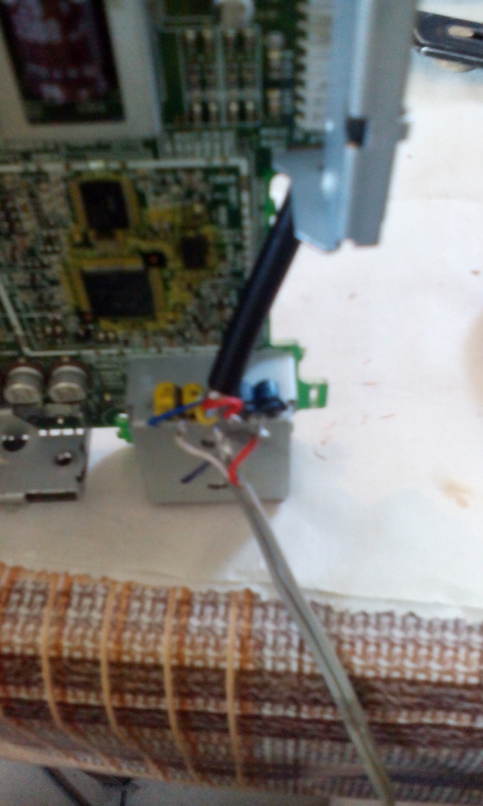 А черный провод с 4 жилами там был или ты отдельно его нашел и припоял? Он одним концом на схему, другим на конденсаторы идет? Аукс у тебя стерео, поэтому там две жилы?