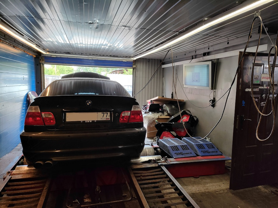 Напомню, мотор стандартный M54B30 с полным выхлопом — коллектор типа Supersprint + двухтрубный прямоток с x-pipe, настройка под измененную конфигурацию. Машина с МКПП.