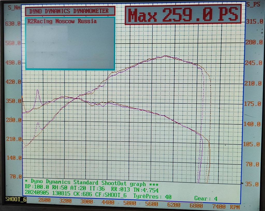 Другой замер делал на равнодлинниках получилось 262 силы и я не помню на какой передаче, если на 5й ладно, это максимум, но если на другой, значит я недобрал явно…