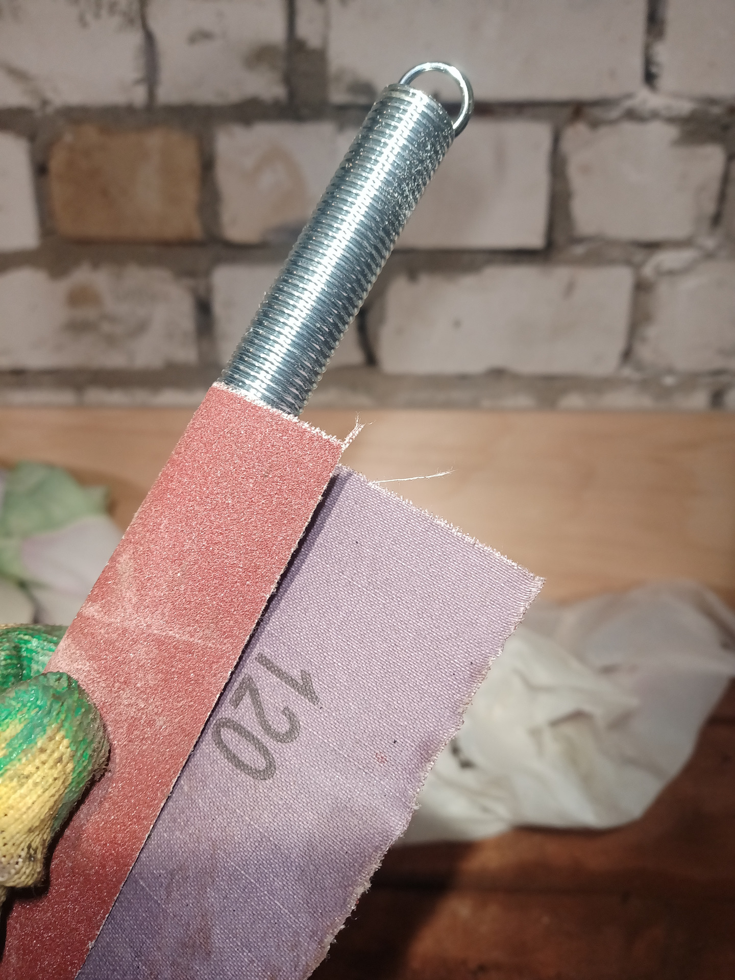 Решил немного пошлифовать её в районе зеленой области, чтобы шток не упирался в нее, а был как бы поджат между красными областями. Взял дверную пружину диаметром 18мм, наждачку 120 и проточил немного, не более 0,5мм.