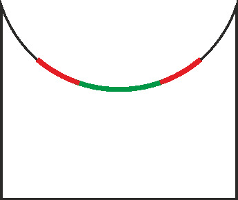 1. Заметил что на втулке бокового поджима пятно контакта со штоком рейки не однородно, есть еле видимая граница между нижним (по рисунку) пятном (показано зеленым) и боковыми (покананы красным), подумал что это указывает на небольшую выработку. Т.е. при езде по ровной дороге, когда нет больших усилий на рейку, шток ходит по зеленой области, а на кочках смещается в красные области.