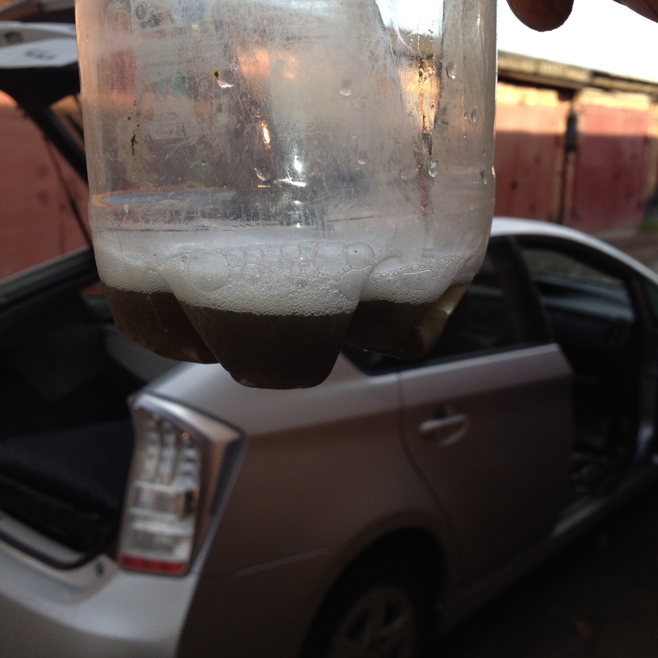 Выпускаем содержимое баллона и соединяем дренажную трубку в первоначальное состояние- грязная жижа будет капать под машину.