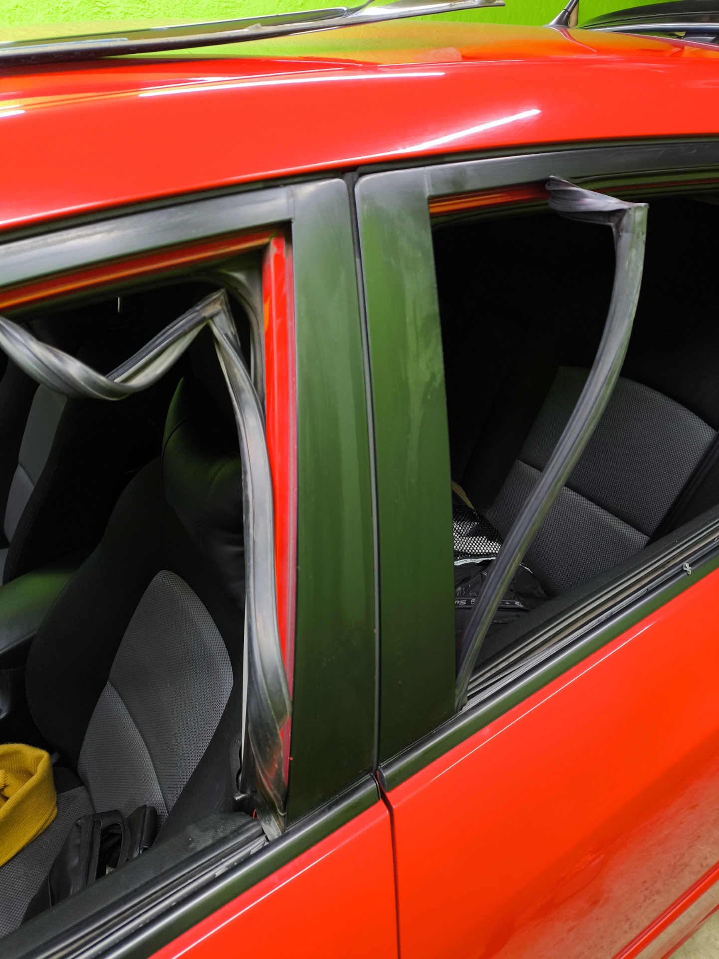 Далее убрал остатки от скотча и приступил к подготовке добавления уникальности. Тут потребовалось обезжирить стойки дверей и снять уплотнительную резинку.