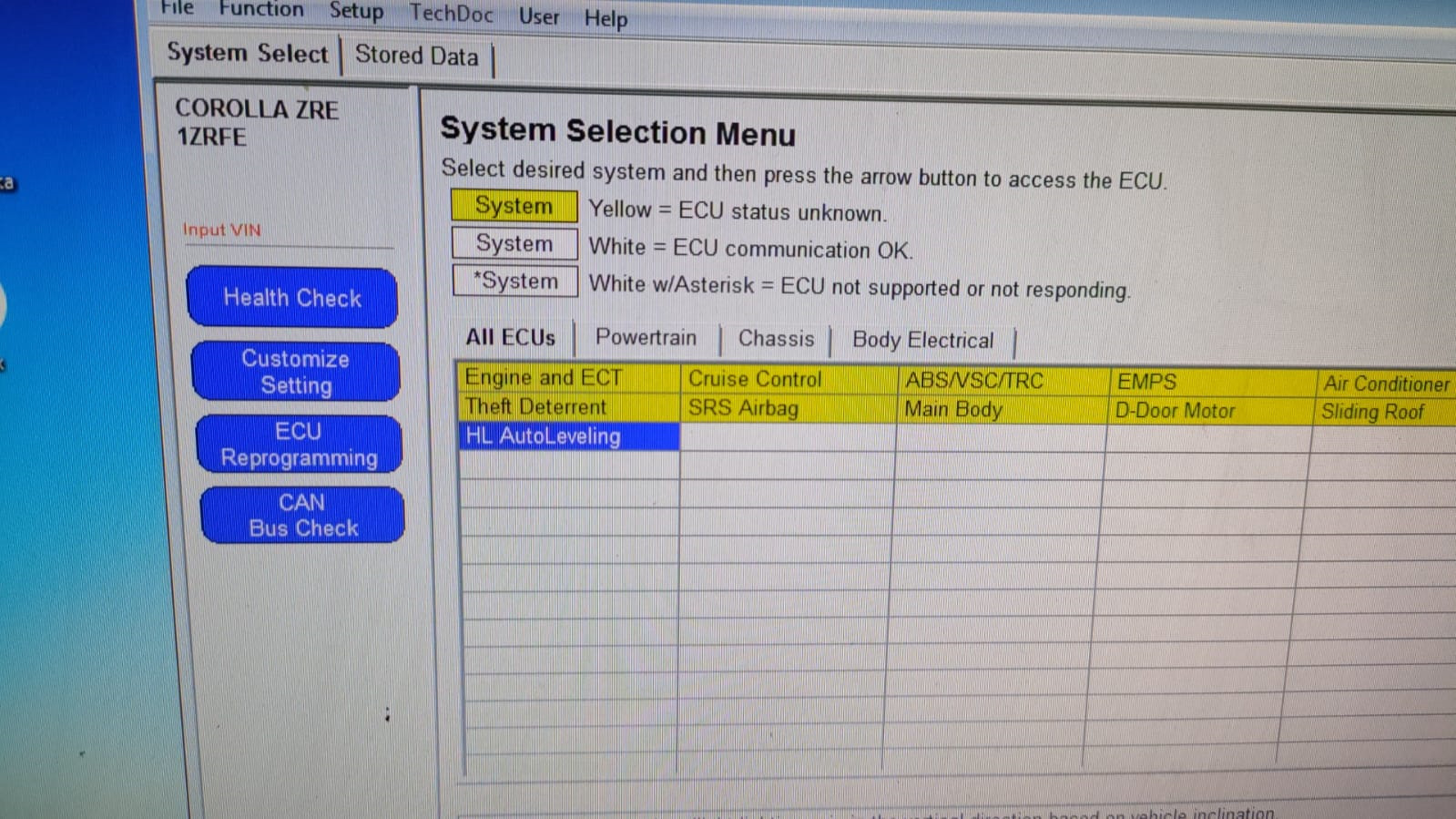 Единственное что меня расстроило на этом ЭБУ — он не видится техстримом, пробовал и через профиль камри зайти, но не нашел там вкладки HL Leveling ECU. Инициализацию сделал через скрепку