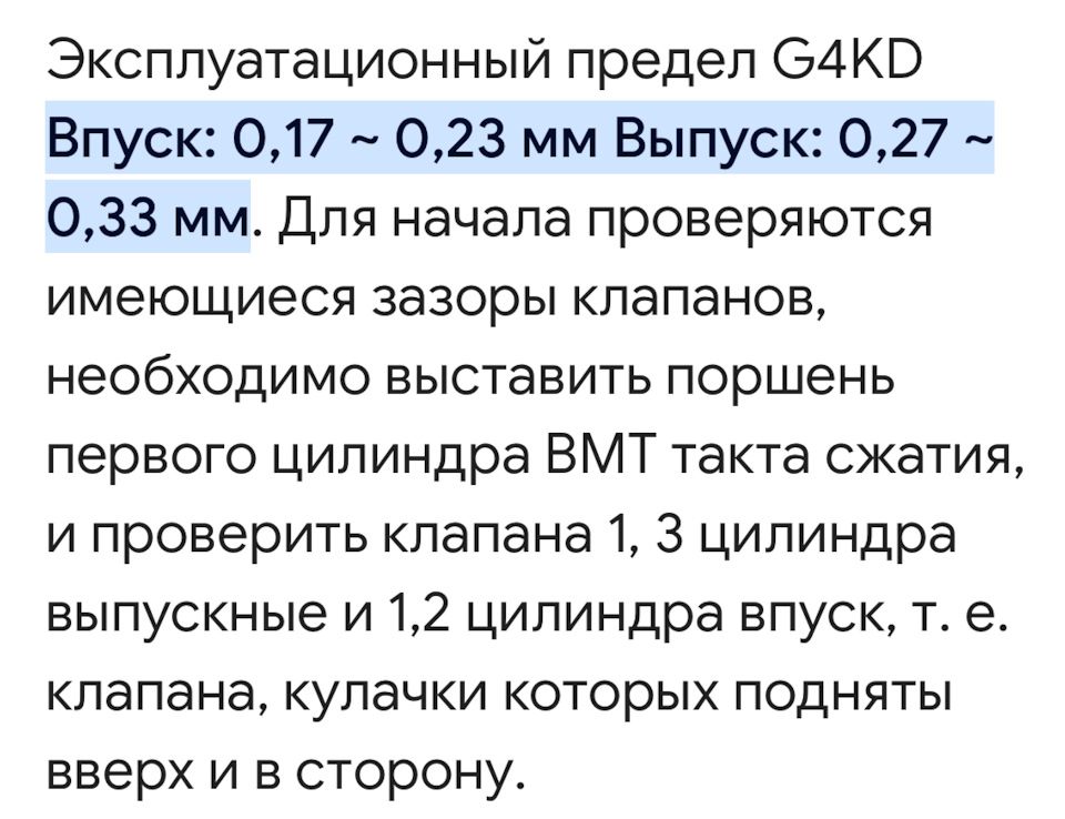 Привет, мне делал капиталку хороший знакомый, мы с ним разговорились на тему нашего мотора g4kd и он посоветовал проверять зазоры клапанов хотя бы раз в 50.000. Это его личный совет лишним это не будет.