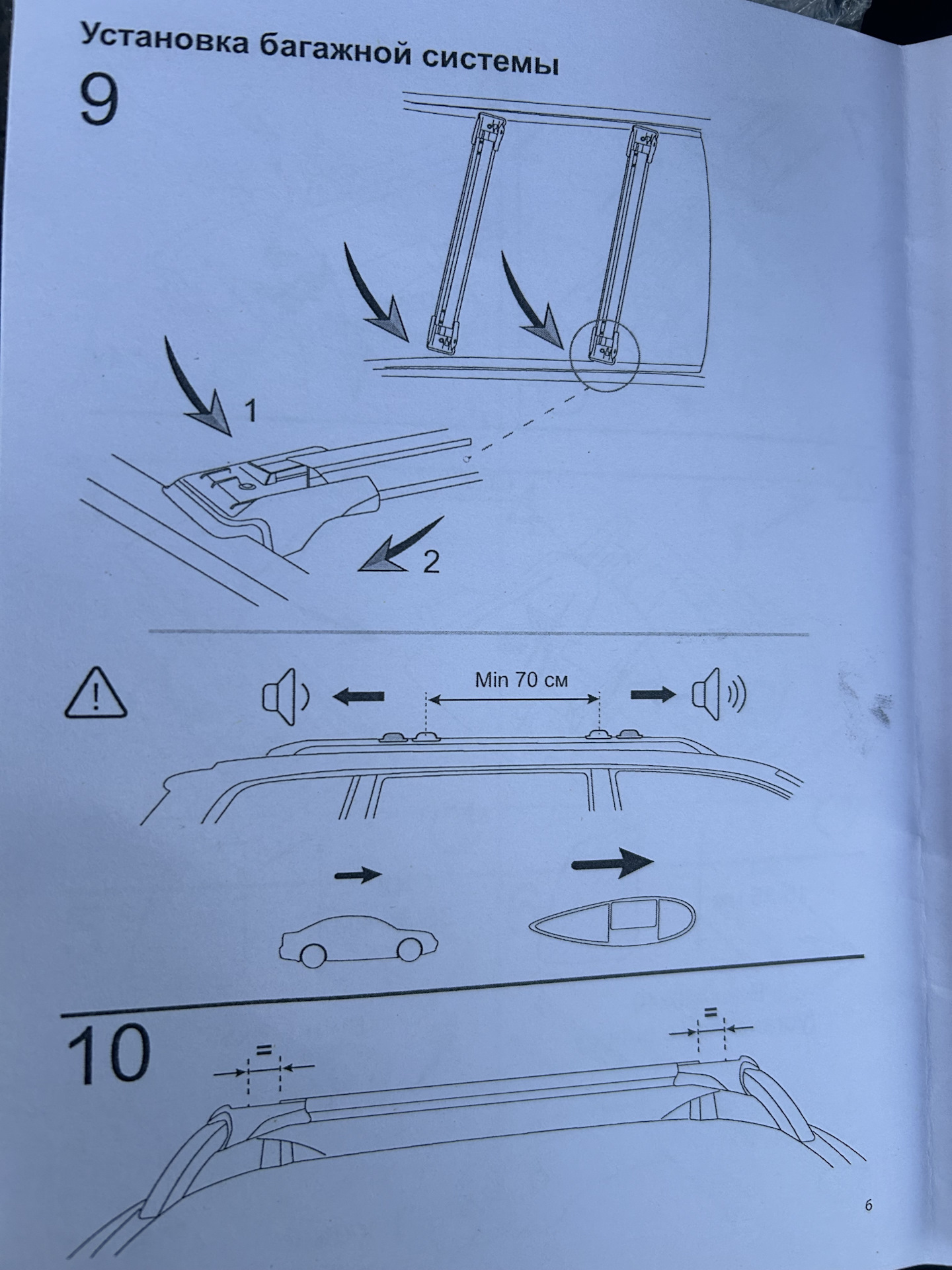 задняя поперечина должна располагаться посередине, между задними опорами рейлинга. Передняя поперечина должна быть около 200 мм впереди от средней опоры рейлинга.
