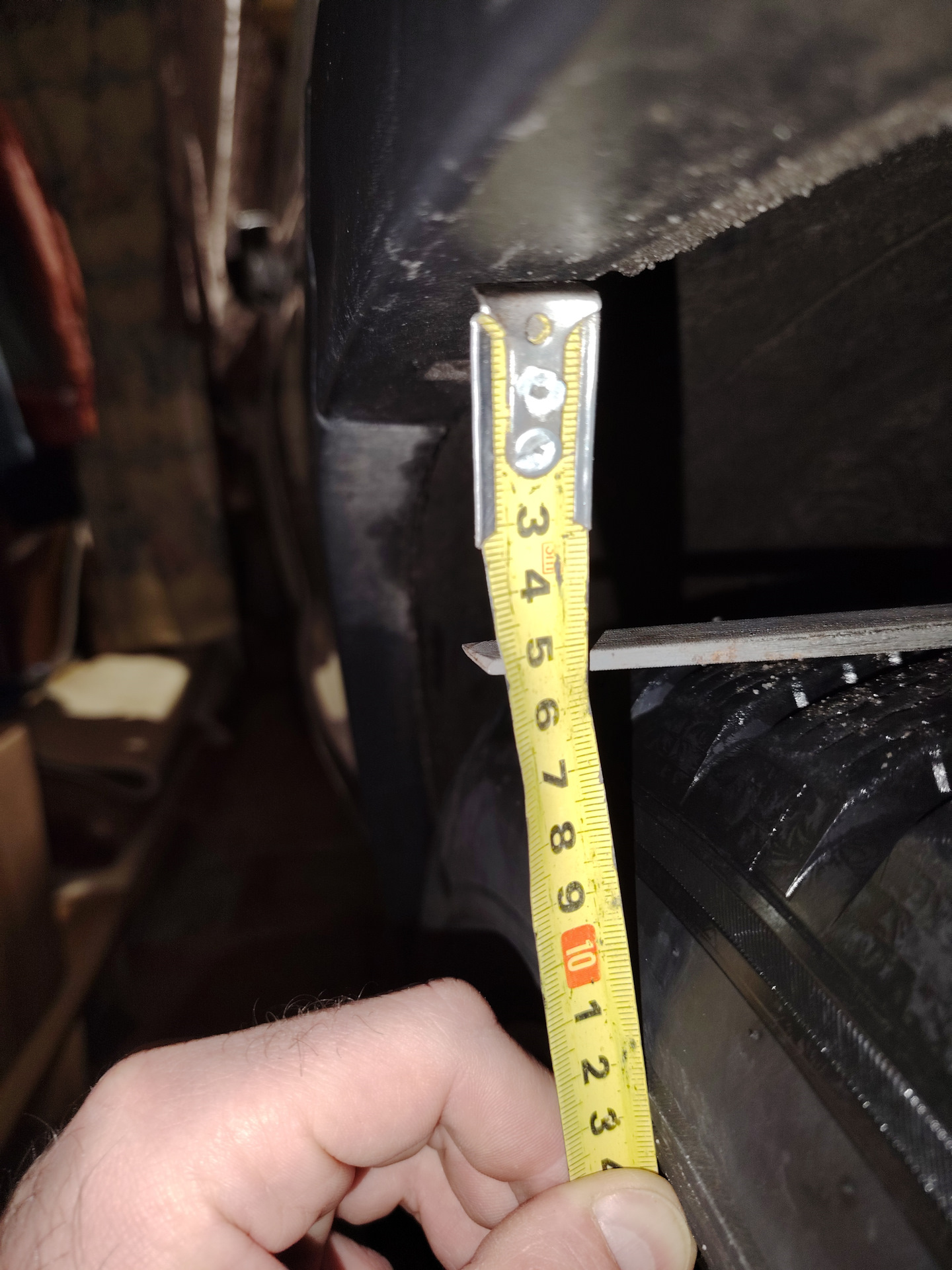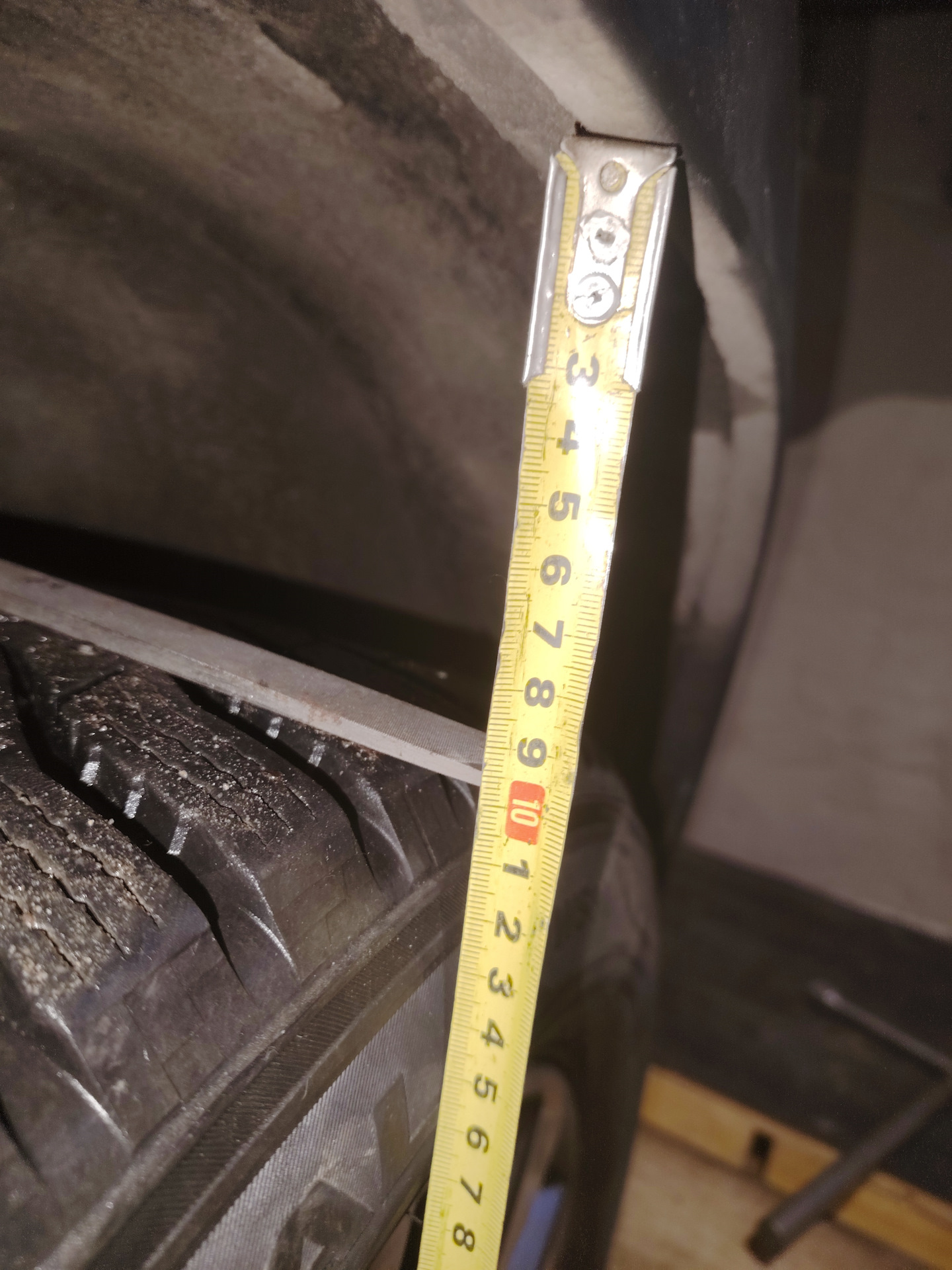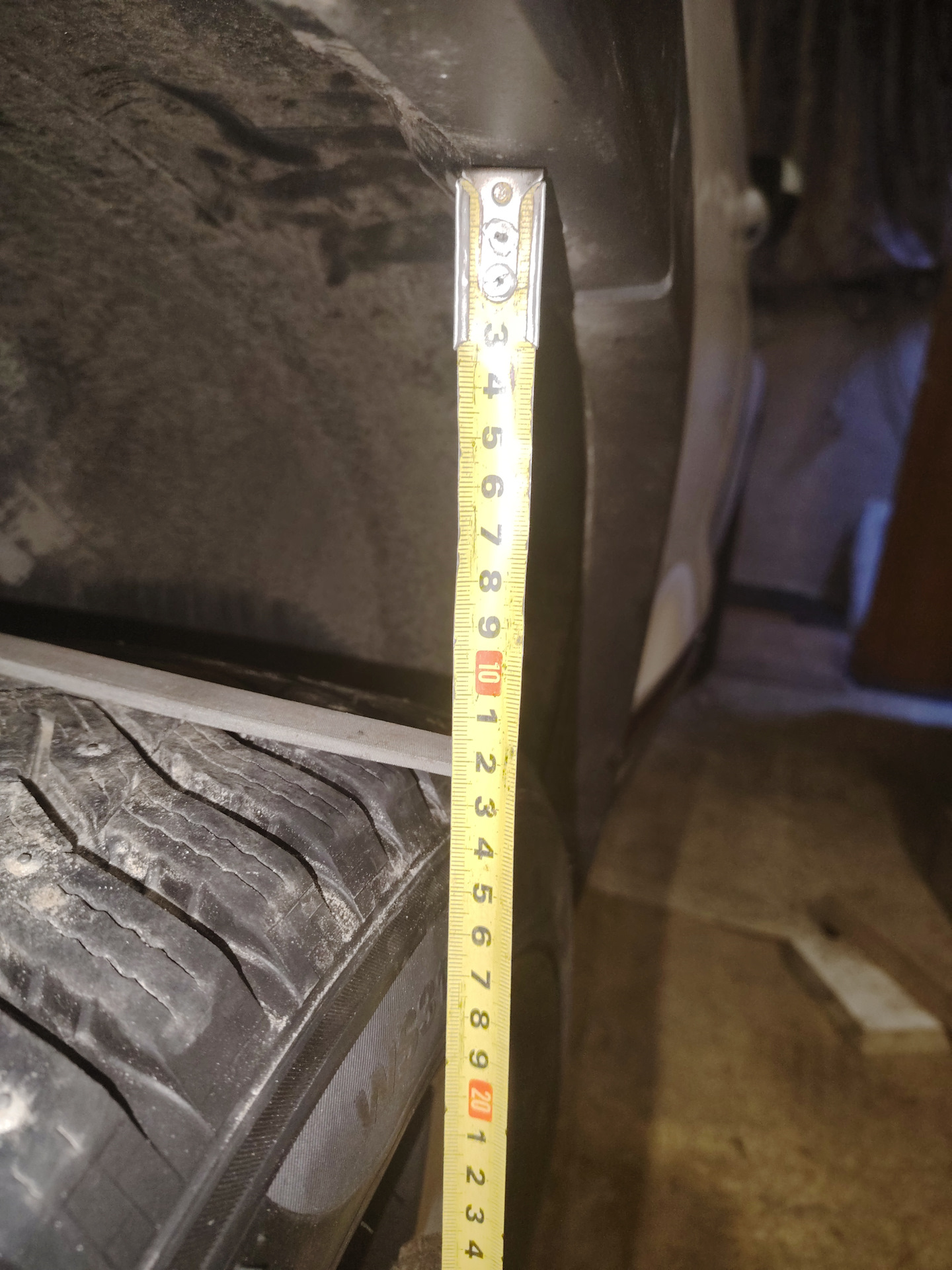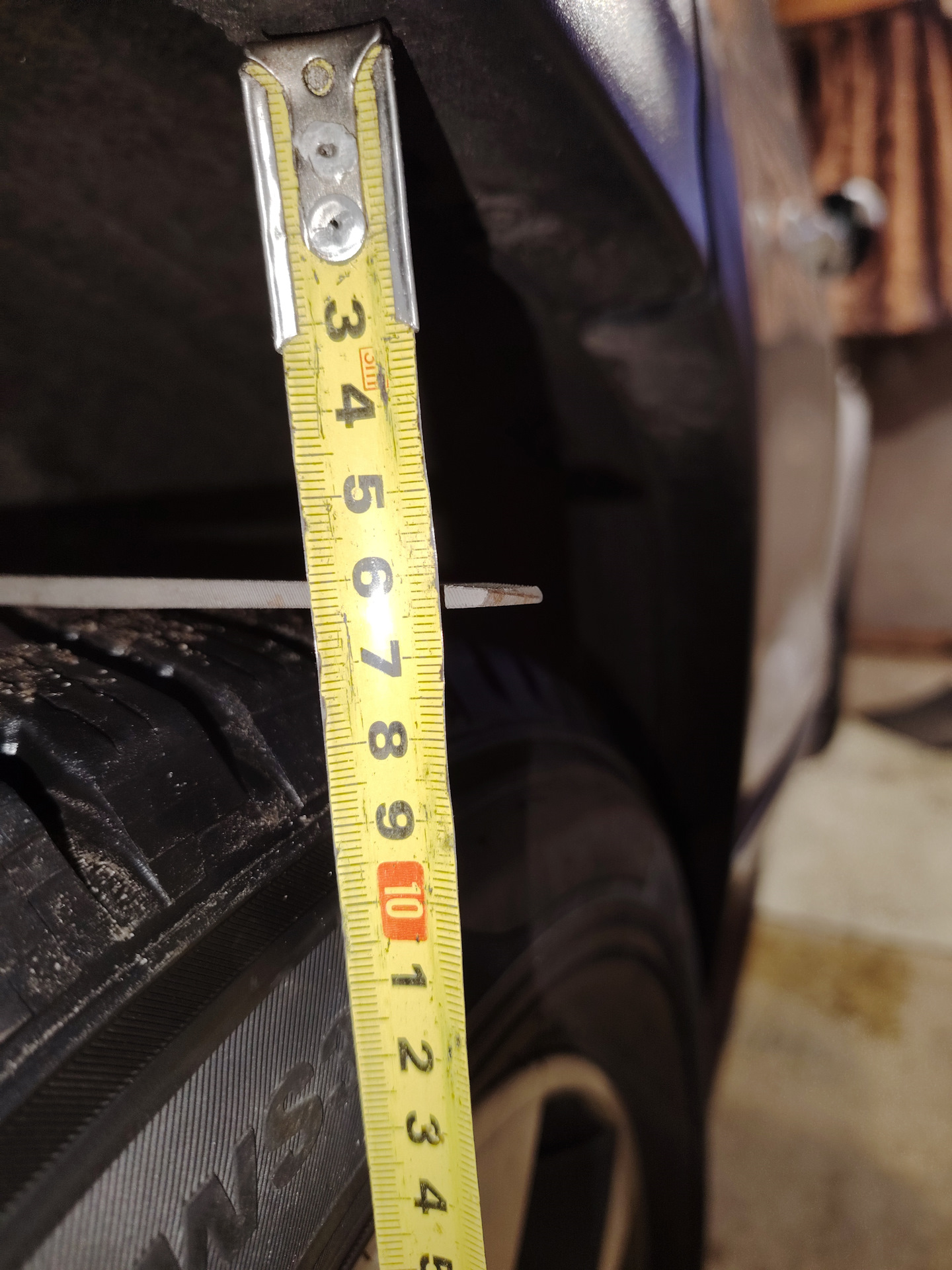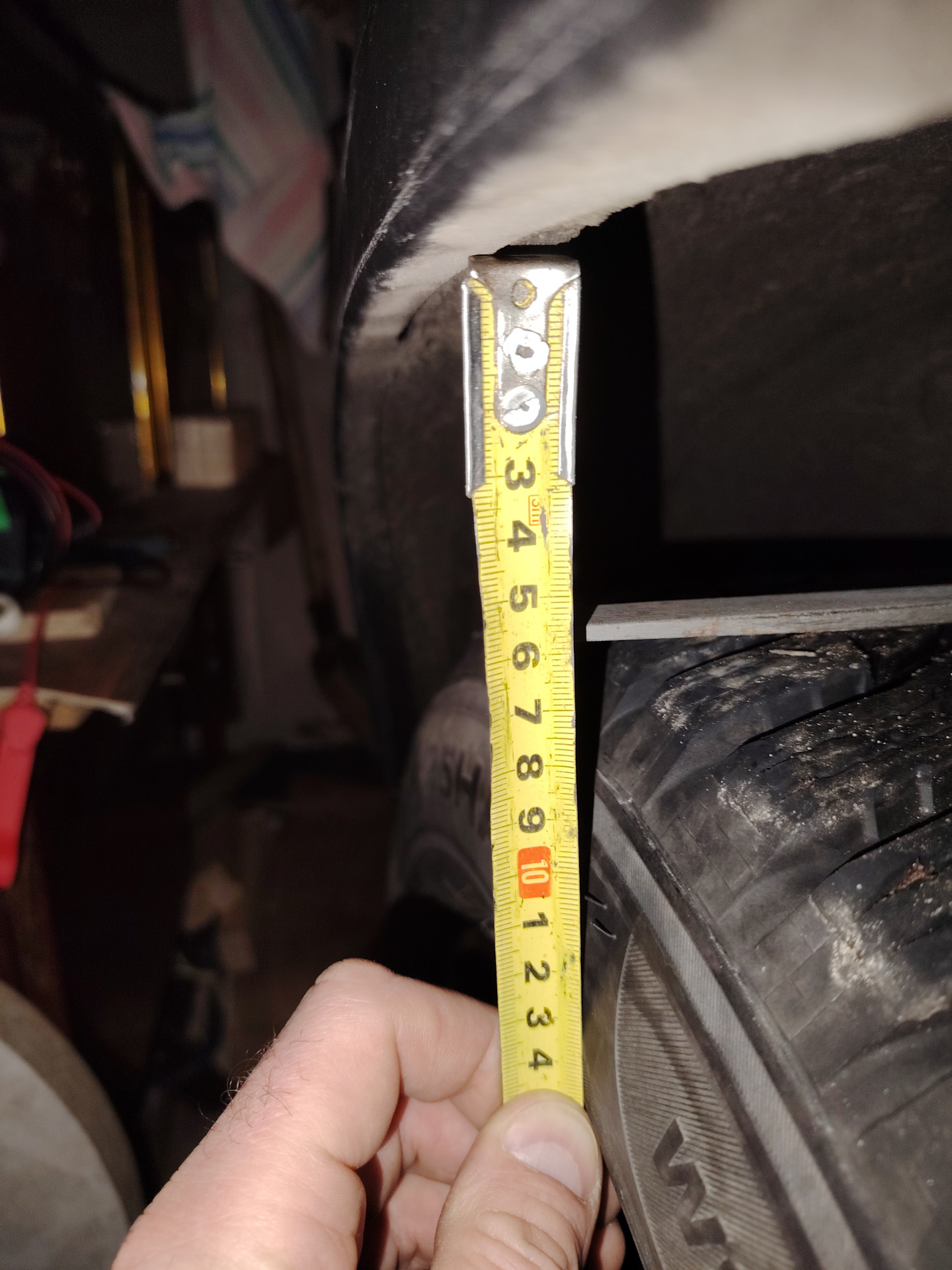 На фото видно небольшую разницу в расстояниях, но это ещё до поездки, сразу после ремонта. Потом все зазоры выровнялись. В целом клиренс увеличился до 30 см (от земли до ребра). Машина стала собранней, уменьшилась валкость. Но самое главное — наступила ТИШИНА при езде по кочкам! А уж проверить езду по кочкам есть где — в гаражах дорога ужасная в этом плане.