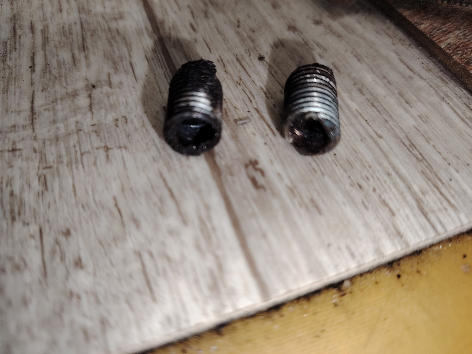 Утром купил новые свёрла. Начал высверливать сначала 6-й — ииии…болт под воздействием сверла просто выкрутился вовнутрь! Со вторым промучился чуть дольше, отказывался он повторять судьбу собрата. При ближайшем рассмотрении оказалось, что у его немного развальцевало, поэтому он не выкручивался. Спилил его заподлицо с корпусом, прошелся чутка большим сверлом, снял фаску. Дальше опять взял 6ку — и болт тоже выкрутился! Вот тут я почувствовал дичайшее облегчение! А то уже чуть ли не паника начиналась и отчаяние…