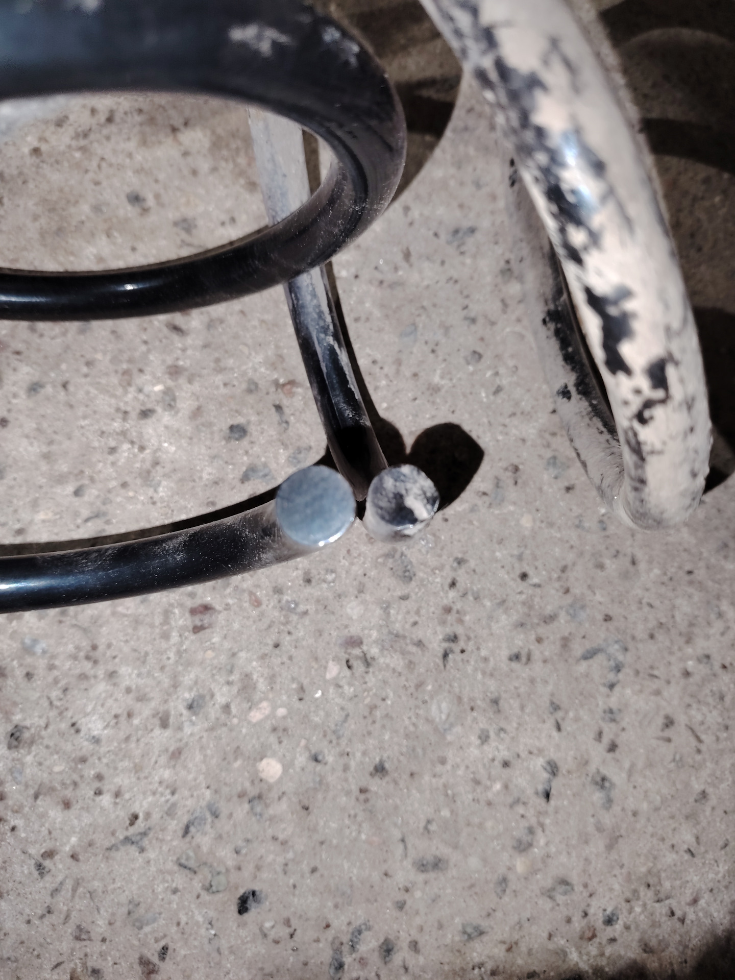 Ну а дальше начались танцы с бубном. Болты на правой стойке отказались откручиваться от слова совсем, причем все три болта стойки! Только рычаг удалось отсоединить без проблем… Верхние болты крепления опорника выкрутились примерно на половину и застряли намертво, ни туда, ни сюда, хотя и были обильно политы волшебной ВД-40. Отмучавшись примерно час, принял решение спилить их и потом высверлить, решив, что это будет явно проще. Как же я ошибался!