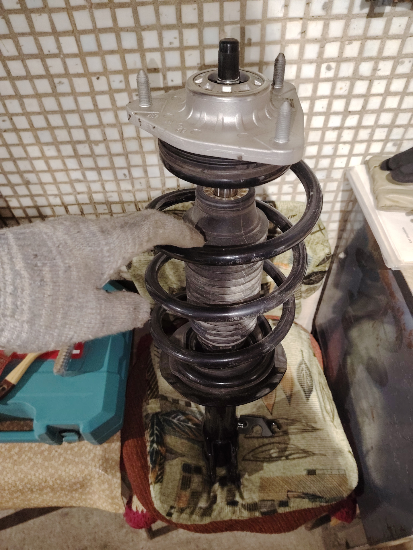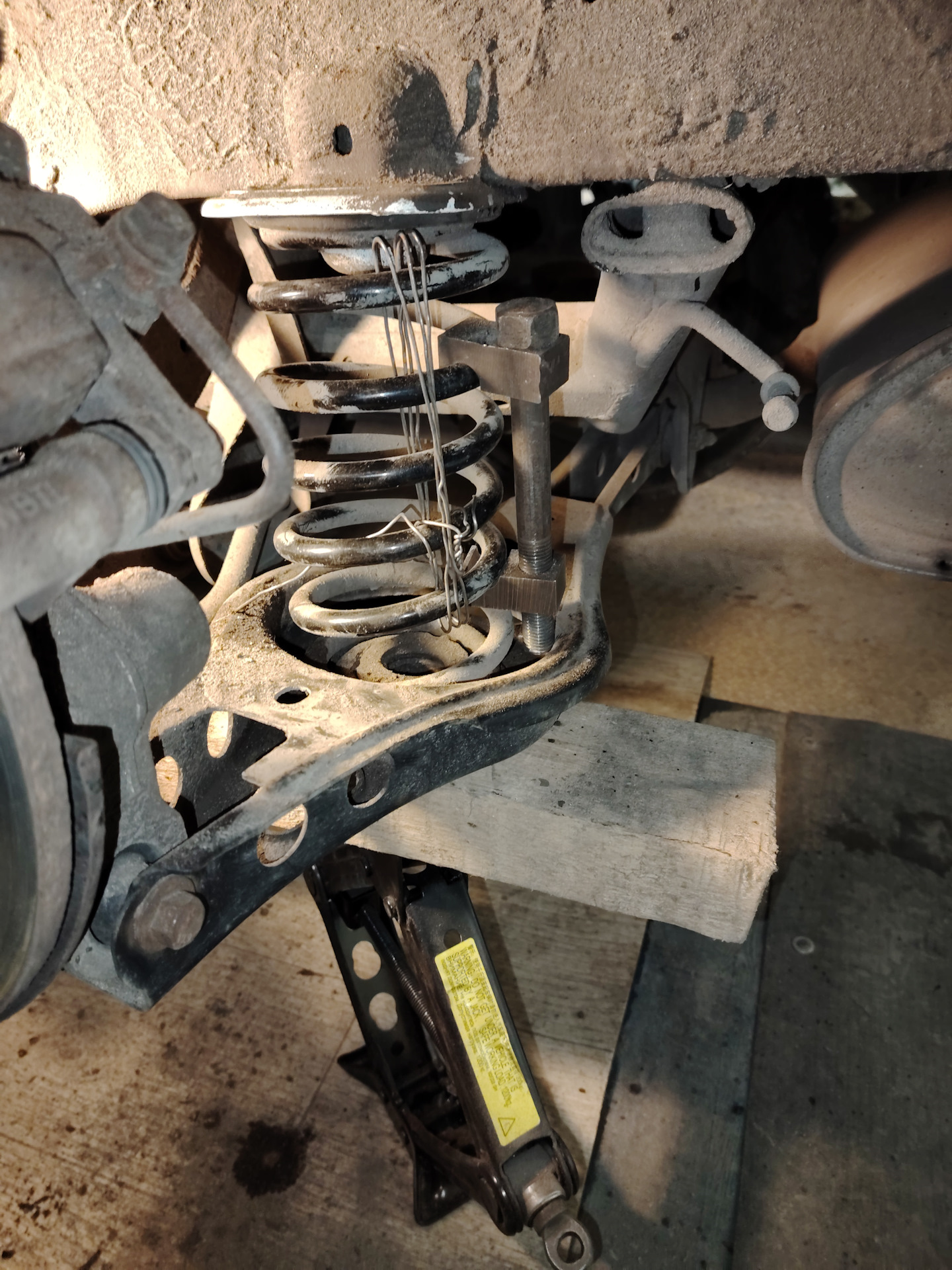 5. Опустить домкрат и вытащить пружину. Всё!