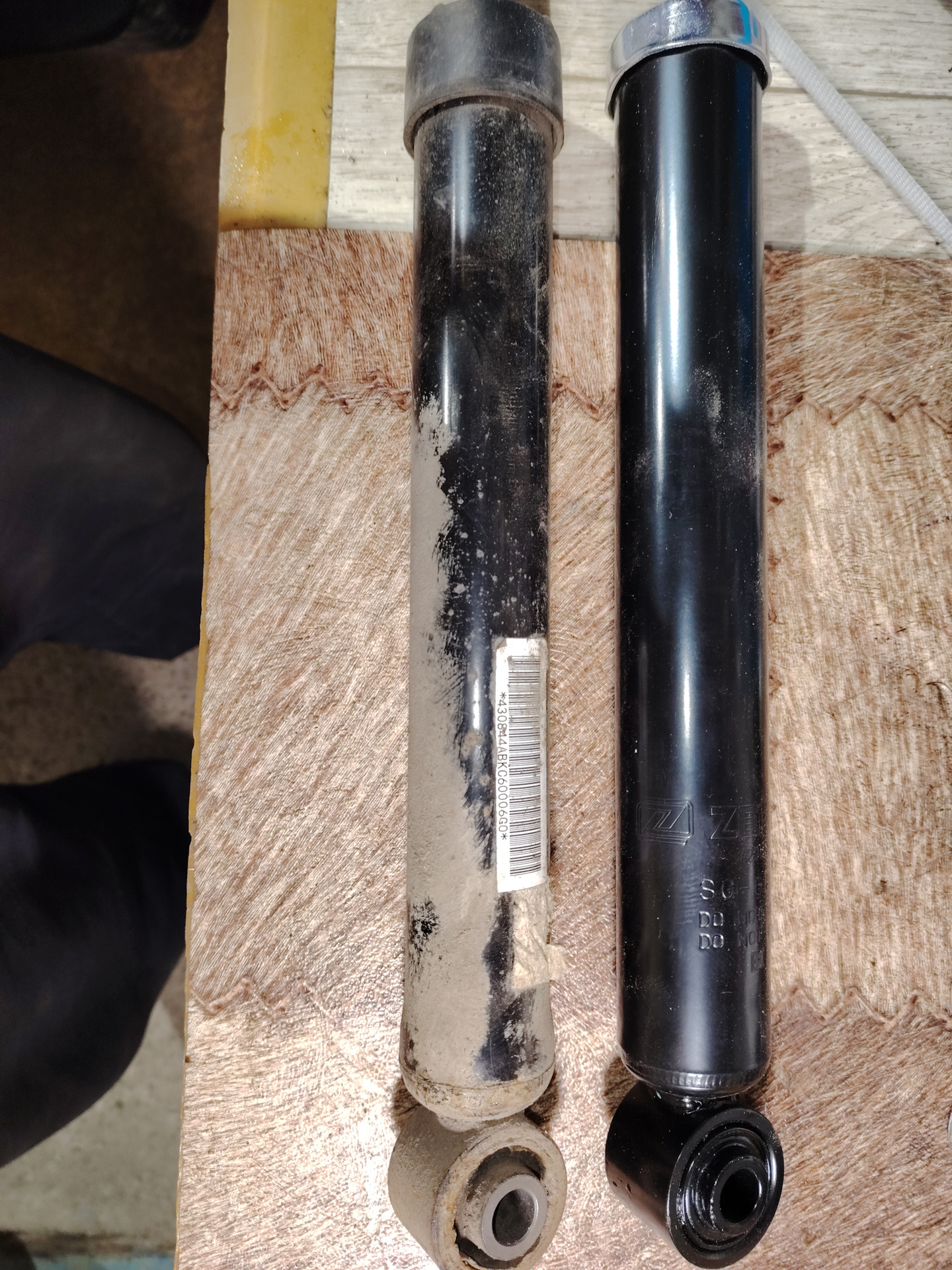 К слову сказать, всё стойки оказались нерабочими. Шток заходит с провалами, выходит на всю длину секунды за 2-3. Пружины определенно мягче новых.