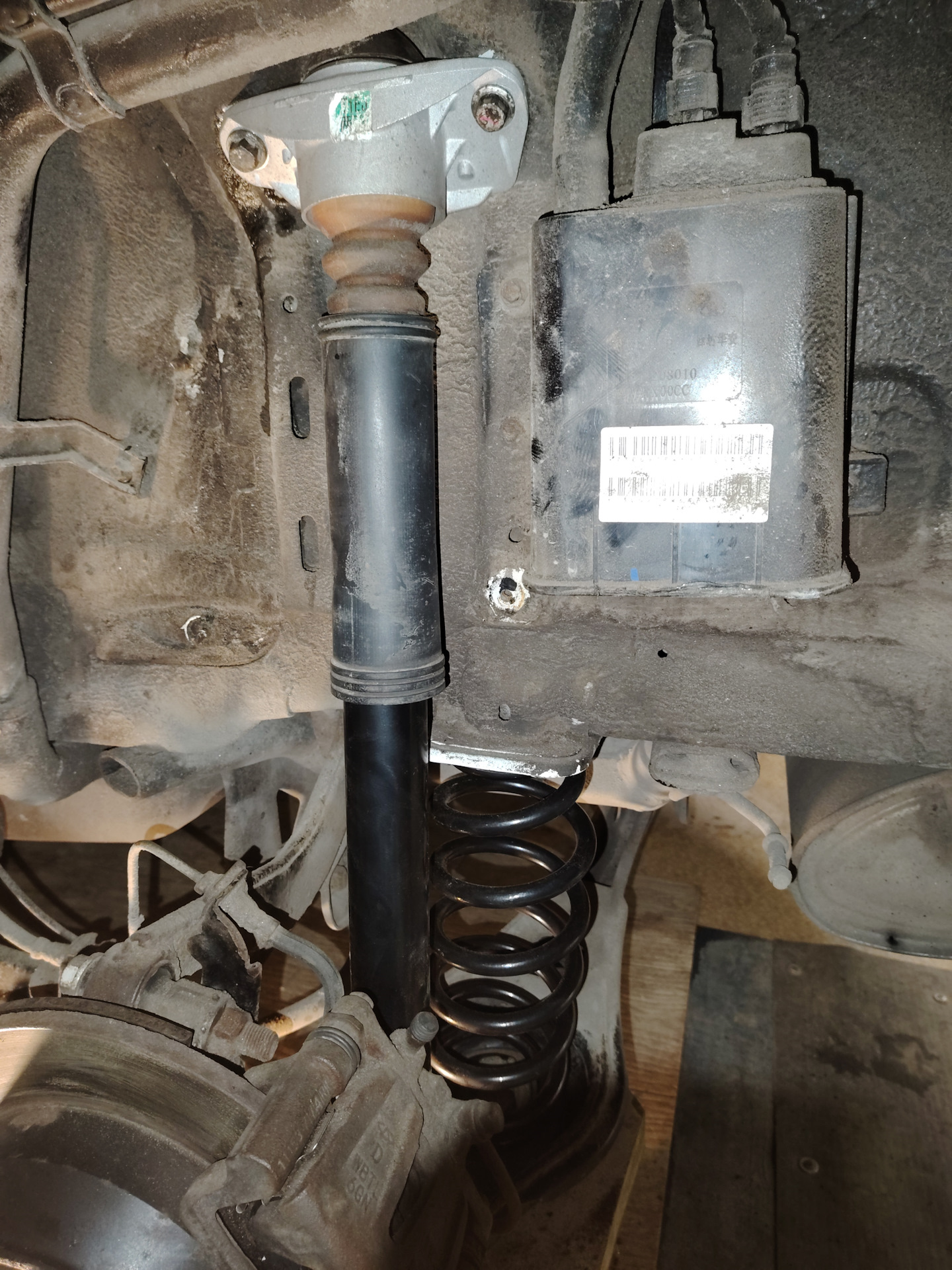 Особых проблем с разборкой заднего левого аморта не возникло, особенно учитывая, что пружина стоит отдельно. Единственное, что пришлось снимать локер, поскольку он закрывает опорник, к болтам крепления не подобраться.