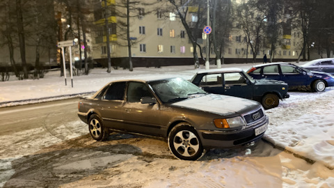 Из детства помню, что сотка это верх комфорта и тишины. Решил начать с максимального размера резины для этих арок, установил 205 65 R16, влезли очень плотно, до рулевого меньше 5мм, до бамперов по сантиметру. Больше размер на Audi 100 C4 точно не влезет, клиренс увеличился почти на 3см, ну а ям на дорогах теперь как будто нет. Выглядит страшно, но для моих целей то что нужно.