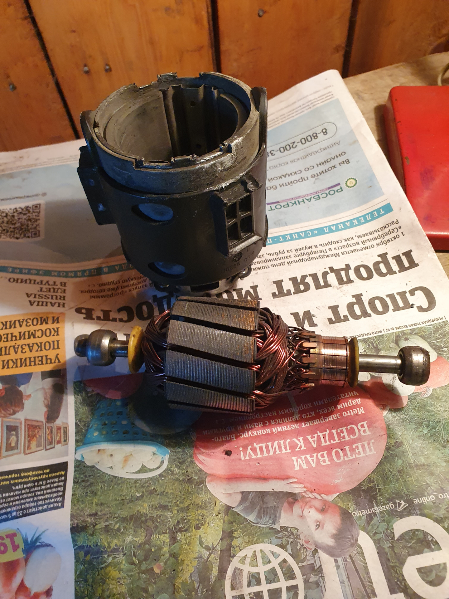 Вынимаем якорь. Щетки еще походят. Для снятия их нужно выпаивать- тогда по мне лучше сдергивать нижнюю часть.