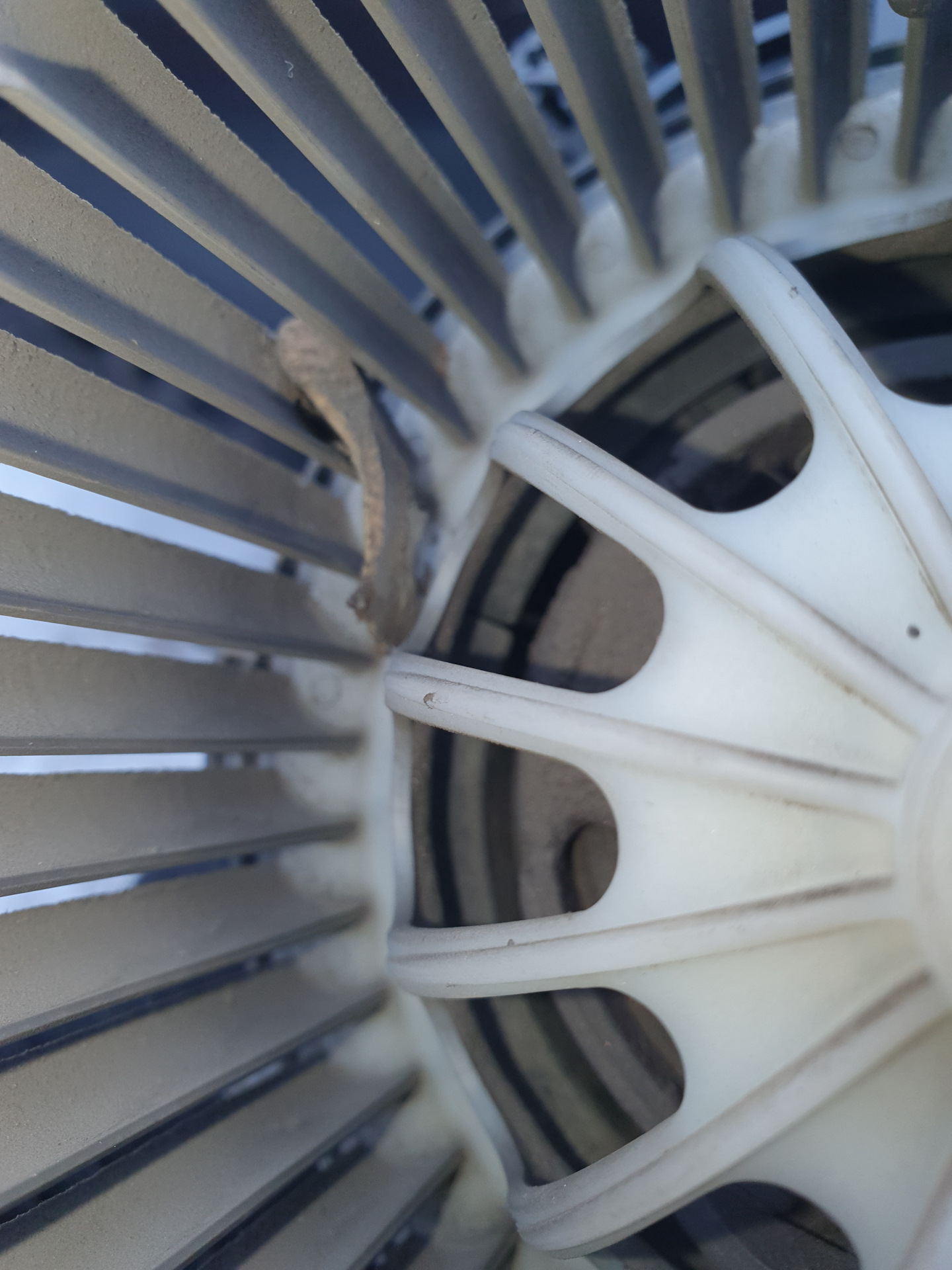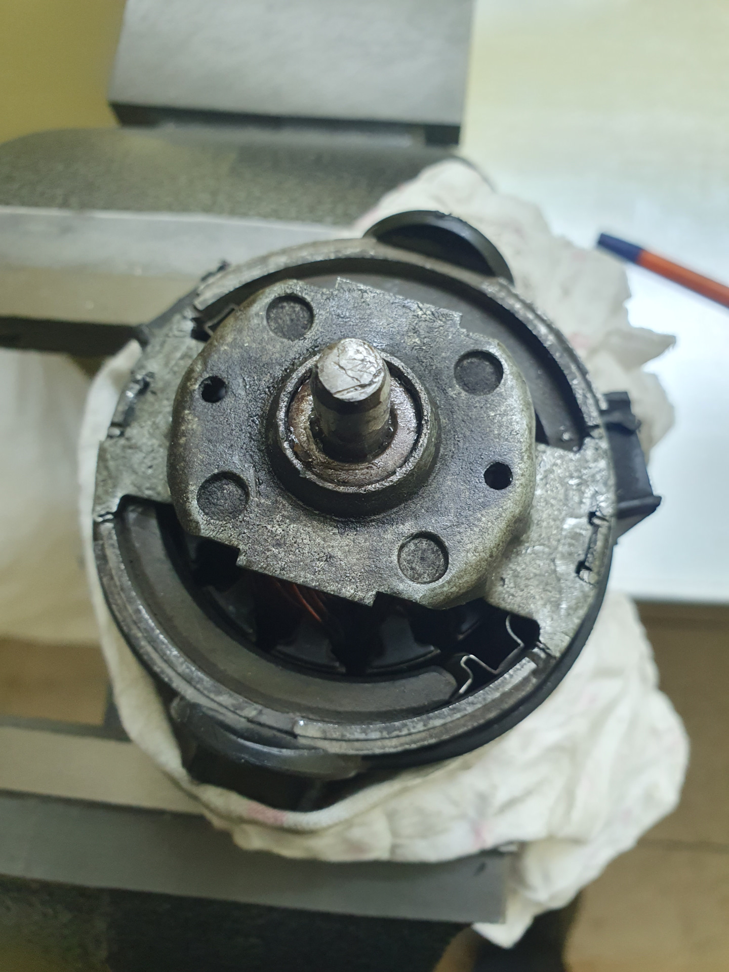 а дальше обычно капля масла в подшипник (втулку) и все. Хватает обычно на пару месяцев. Решил пойти чуть дальше. При съеме видим на крыльчатке вот это.