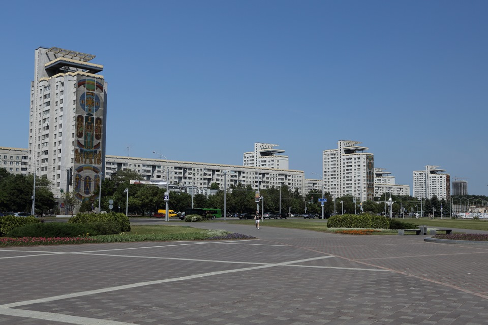 В качестве легкой экскурсии решили отклониться от маршрута и проскочить через Минск. Впечатление такое, что попал в СССР. Широченные улицы, и практически полное отсутствие машин. Да и людей на улице тоже не шибко много. Из общей картины выбивается только здание центральной библиотеки – этакий кусочек хайтека в океане остановившегося времени.