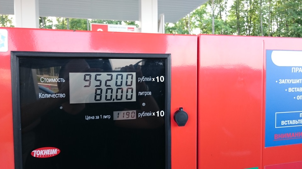 На выезде из Минска решаем плеснуть в бак топлива — не считая России, в Беларуси самый дешевый по маршруту следования бензин. Кстати, обращаю ваше внимание на тот факт, что с февраля на АЗС запрещено брать валюту, как это было раньше. Расплатиться можно лишь местными рублями или карточкой. Похоже, последствия обвала рубля сказалось и на Беларуси. Впрочем, пластик принимают на любой заправке. Залив в бак 80 литров понимаю, что заправился без малого на миллион!