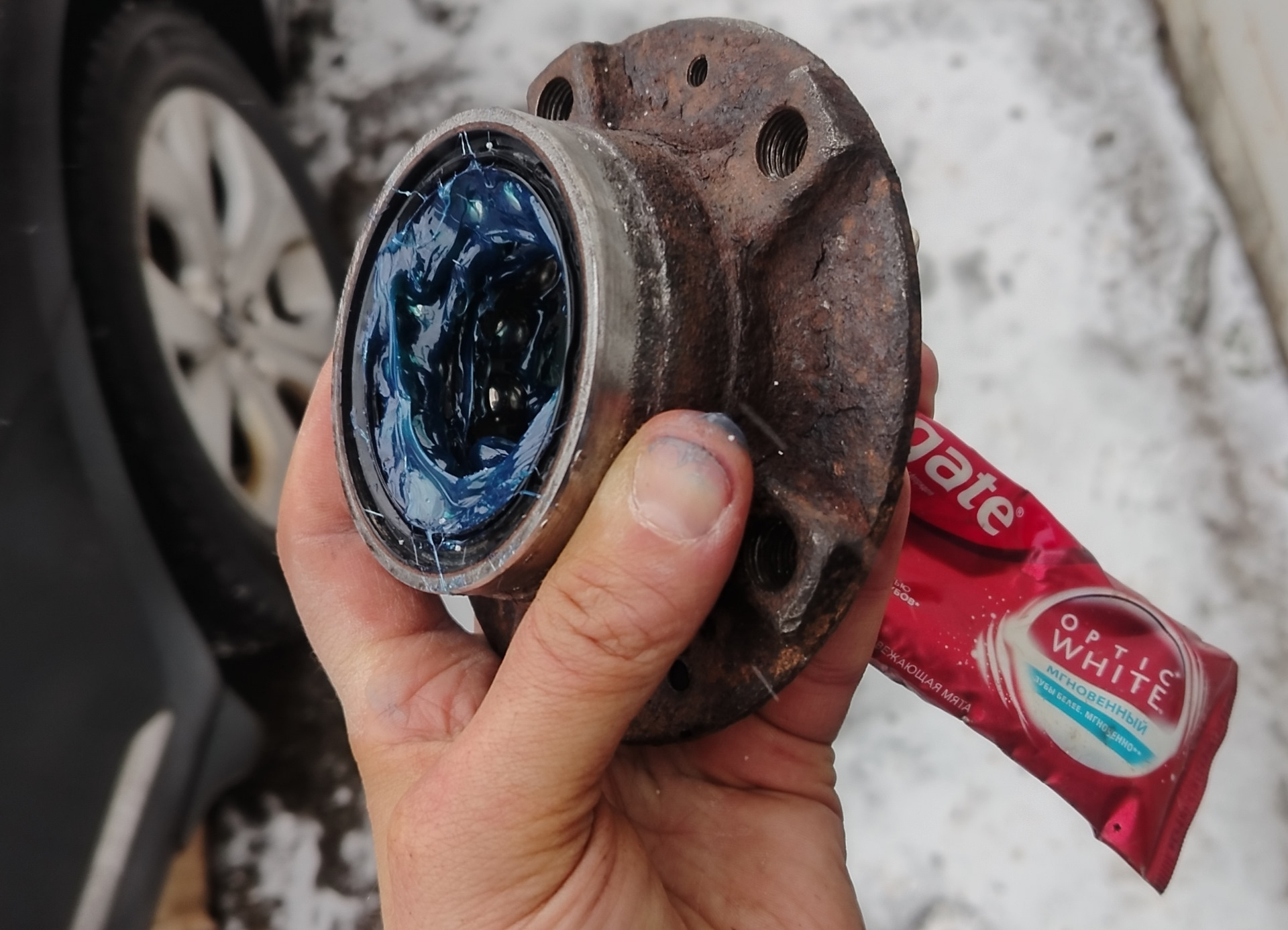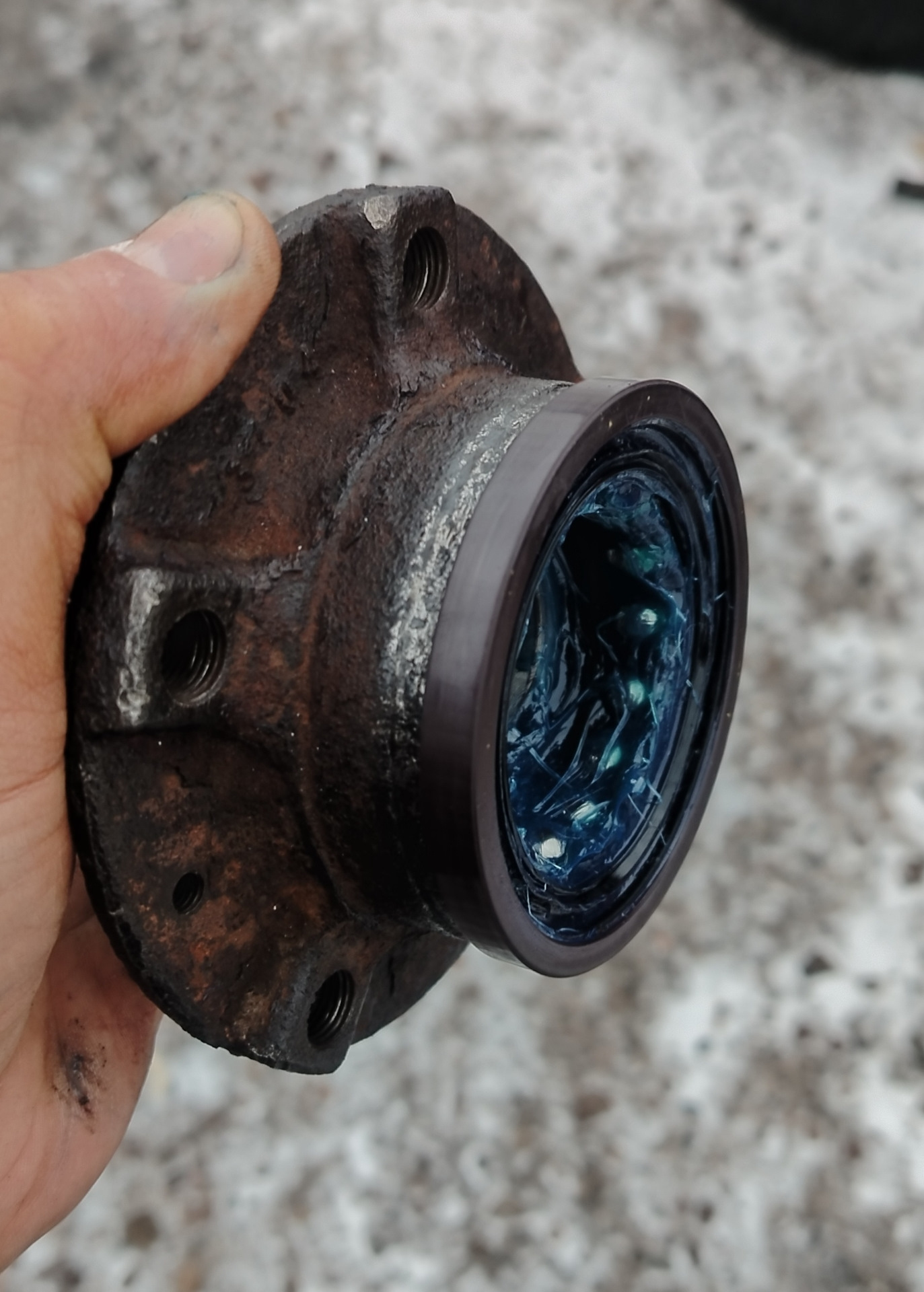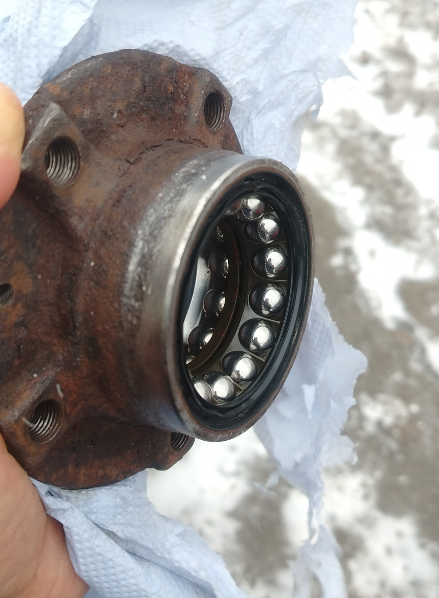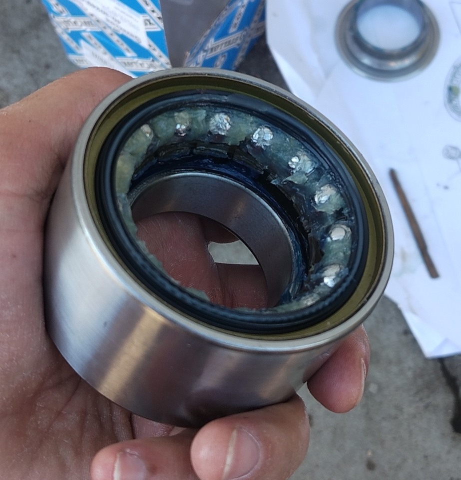 Варик ездить зимой без ABS и ESP, ожидая кончины подшипника — точно не самое лучшее решение. Всё заняло 2 часа. Старую смазку из подшипника вымыл в бензине. После сборки магнитное кольцо протер обезжиривателем, чтобы не осталось никакой смазки и меньше налипало и проверил магнитные метки.