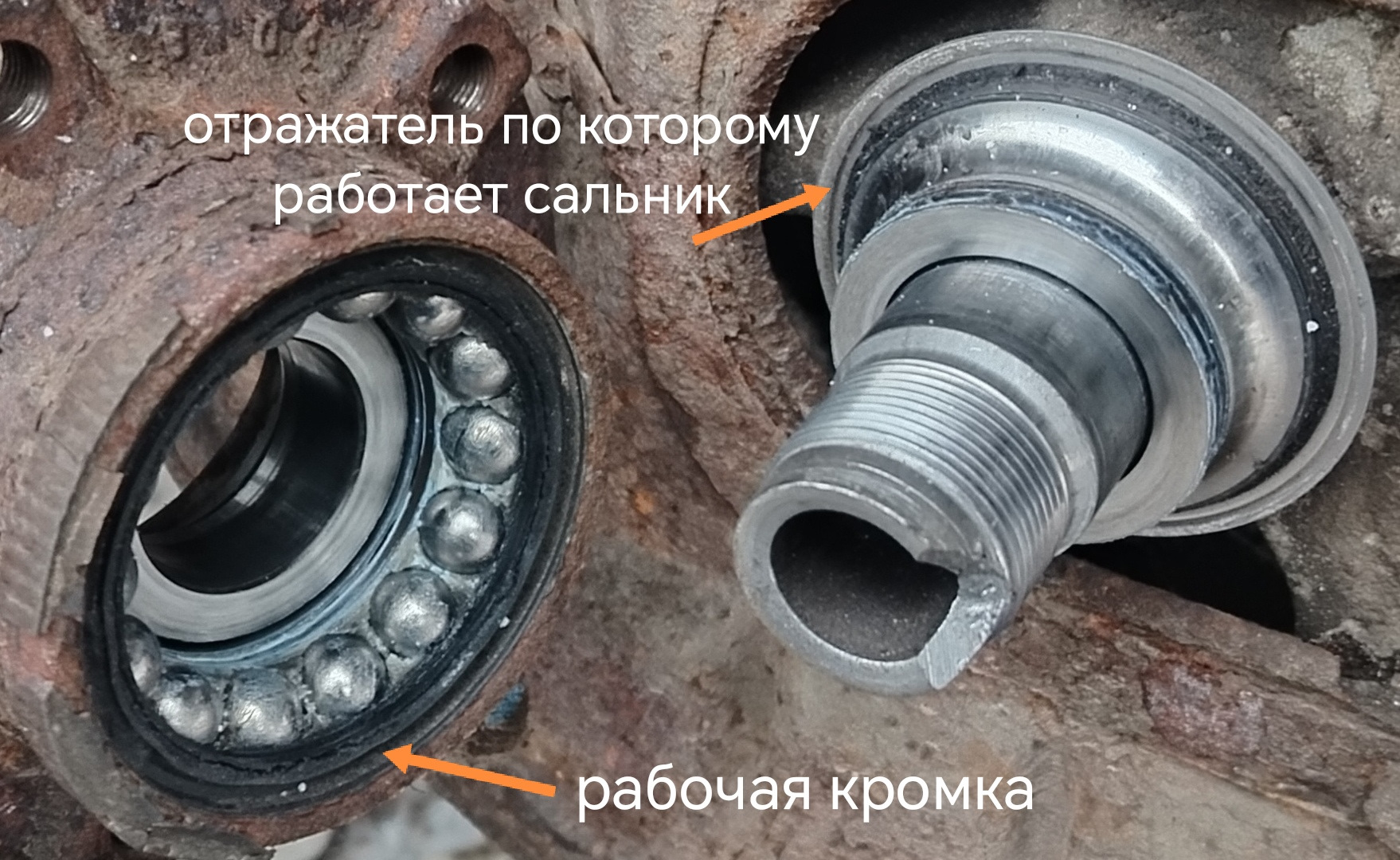 я не буду с вами спорить, ибо каждый останется всеравно при своём и не будем тратить время друг друга, но как устроен и работает сальник в таких подшипник — я знаю не с картинок. Есть отражатель и есть рабочая кромка. Это не типичные сальники, работающие кромкой по поверхности вала. Здесь и в аналогичный подшипниках сальник работает по отражателю. Нет фото с макросъемкой, поэтому… хотите верьте, хотите нет) Спишемся через N тысяч км)
