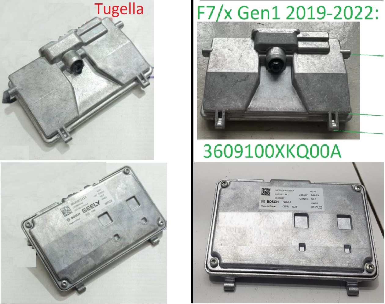 Теперь давайте ознакомимся с полным сравнением как вся система сделана у Дарго, F7/x_Gen1_2019-2022 и F7/x_Gen1_2022-2024 (где совсем другой модуль камеры кстати сказать). Да, и еще: сам блок камеры прилично нагревается! И этот факт используется производителями для подогрева зоны-сектора перед камерой. Да да, именно как подогрев! В этом судя по всему и весь секрет нашей проблемы! На картинке ниже красным штрихом — зона, которая нагревается корпусом камеры. А синим — не нагревается вообще ибо камера НЕ находится над той синей зоной: