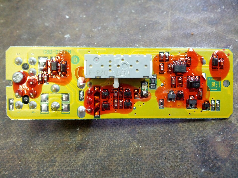 Всем привет:) Про подсветку основного блока уже рассказывал. Пассажирские сделаны по аналогии, только вместо прорезей — отверстия, ничем не хуже. Сверлил 3кой, заливал термоклеем. Предварительно заклеив металл.лентой. Еще нужны транзисторы, иначе работать не будет, красный смд диод, смд резистор(2кОм использовал).