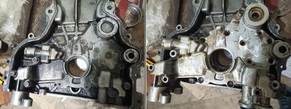 На время поставил другой мотор . Может кому будет интересно, масляные насосы на двигателях QR20DE — под Японию и Европу — отличаются . В "европейском" стоит масленый радиатор в " японках" его нет . Купил под этот двигатель переднюю лобовину с масляным насосом, видны отличия — "японец" прямой ввод с верху в главный масляный канал, "европеец" заглушка и ввод через низ . Если " японский" насос поставить в " европейский" — будет зазор несовместимый с жизнью двигателя .