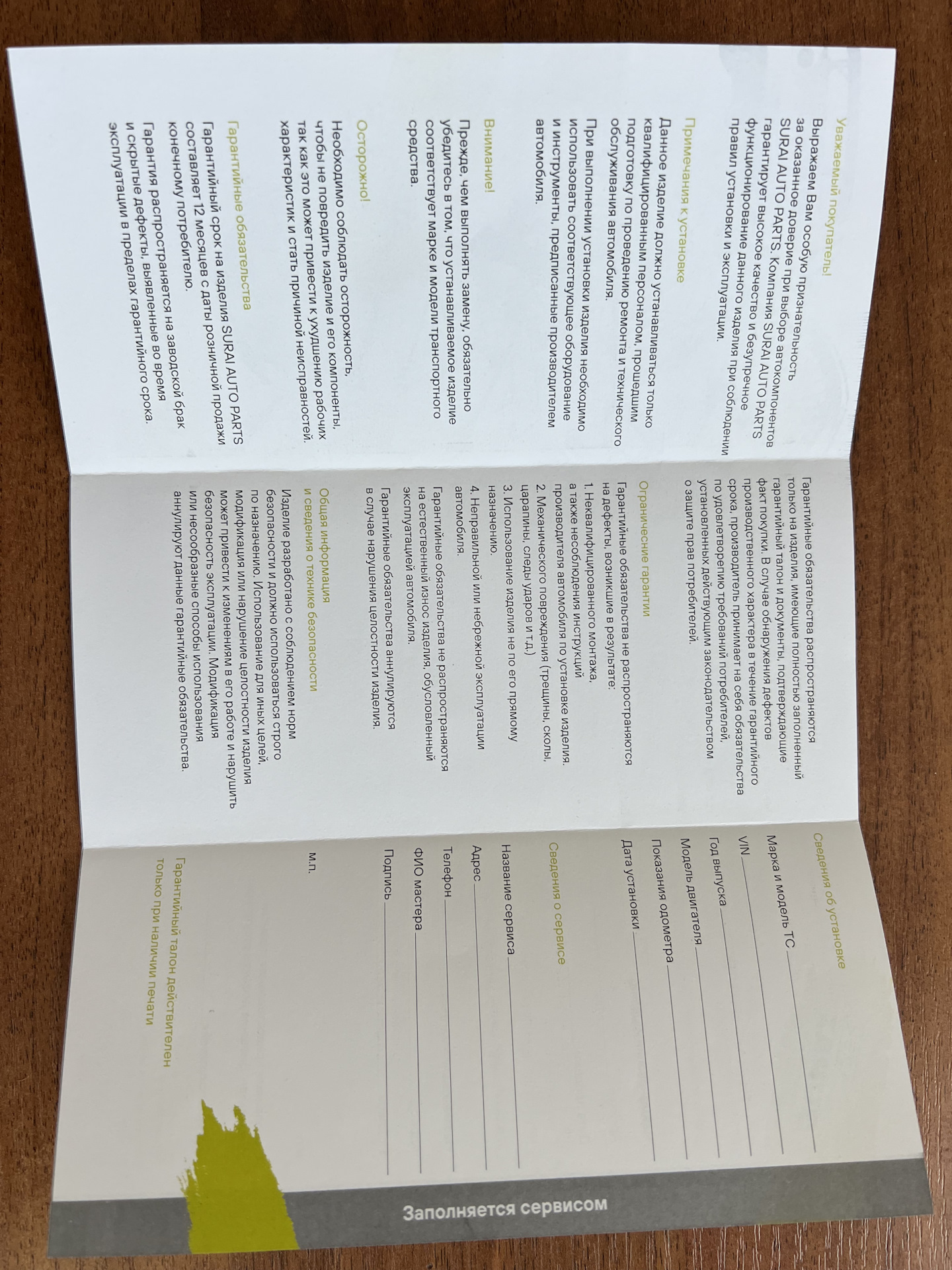 Кстати чуть не забыл про гарантийный талон, он тут есть все официально! В талоне все подробно расписано касаемо запчасти, и гарантийного срока!