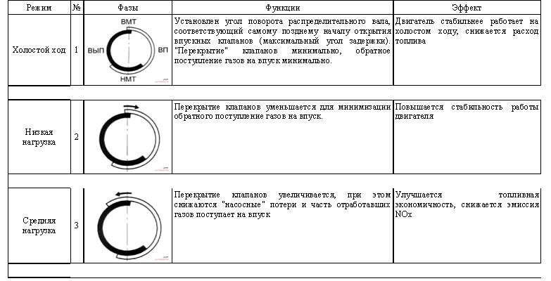 Функционирование системы VVT-i определяется условиями работы двигателя на различных режимах.