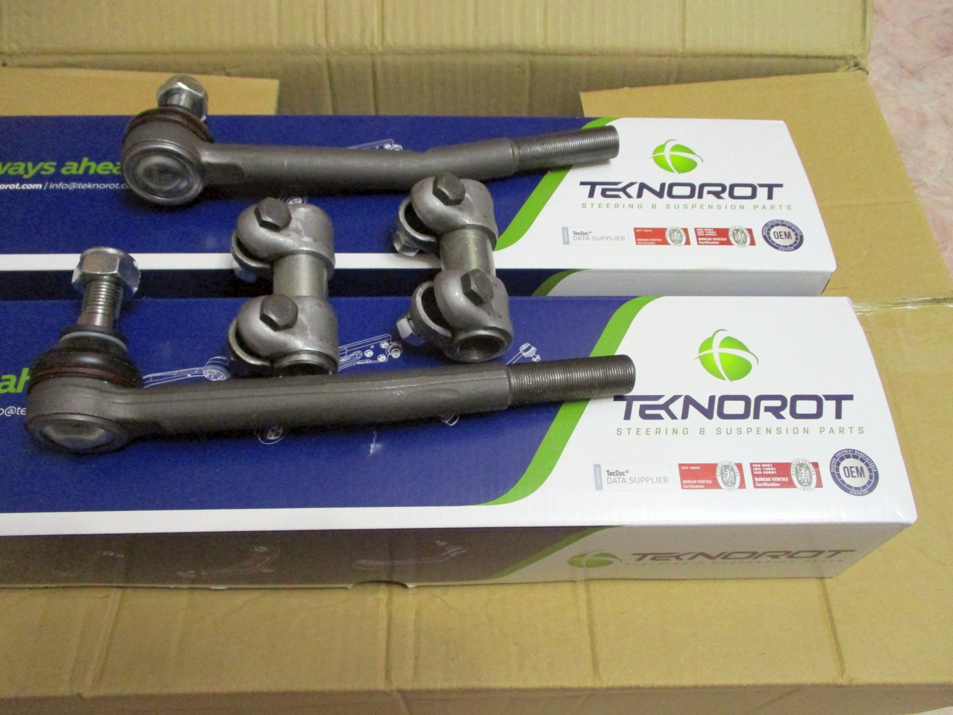 Пока цены не улетели в небеса, озаботился приобретением элементов передней подвески. По цене и качеству многие хвалят компанию TEKNOROT, всё-таки качество турецкое, китайскому до него ещё далеко. Почему бы и не прикупить? Вот и прикупил комплект рулевых тяг и шаровых опор. Тем более, что:
